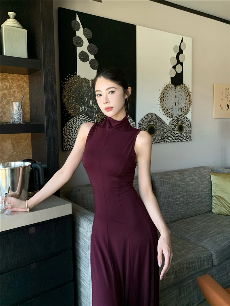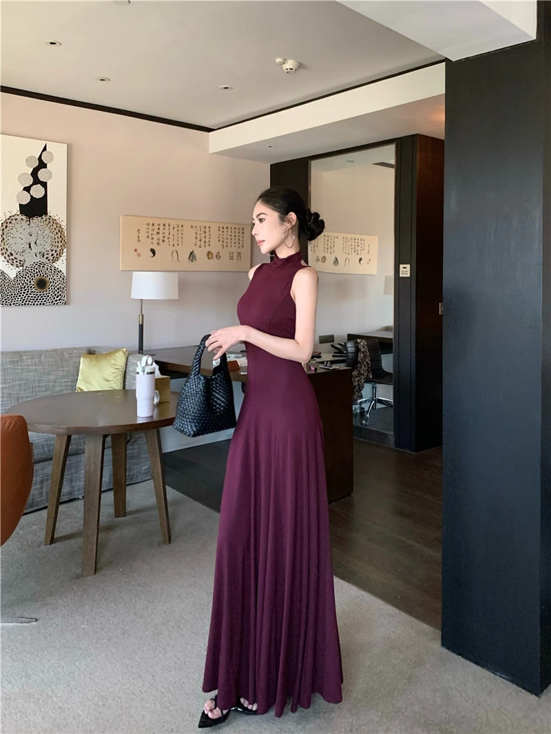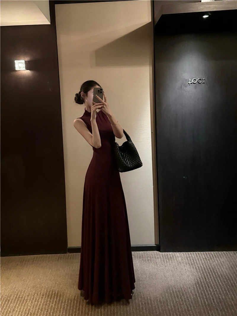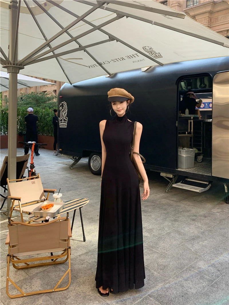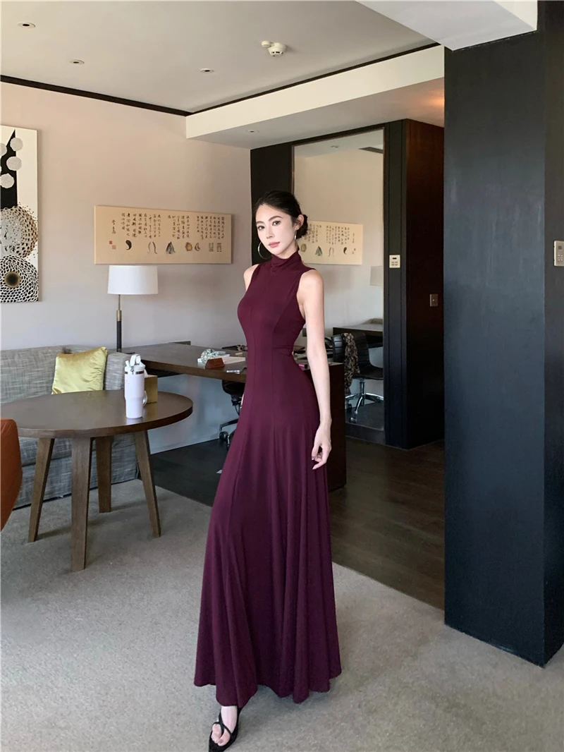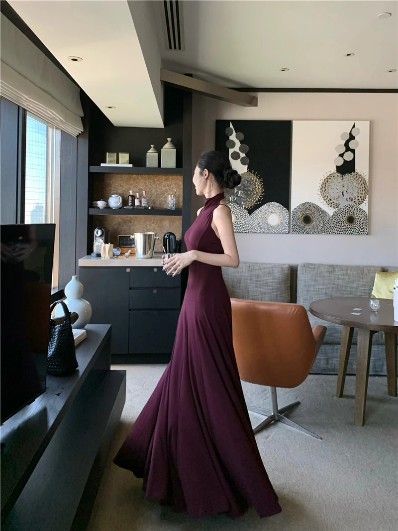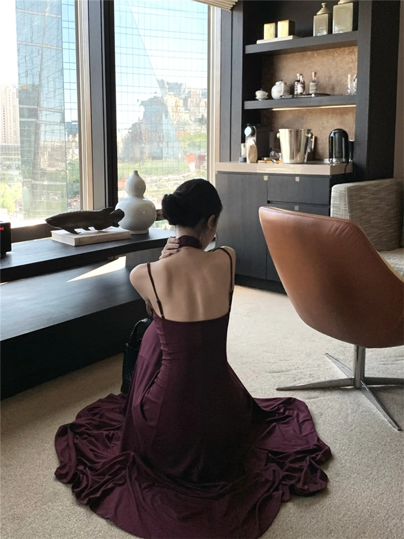 LBSFY -Women's Sexy Vintage Summer Backless Dresses Slit Fit Sleeveless Spaghetti Strap Halther Evening Dress Club Party Prom Chic New