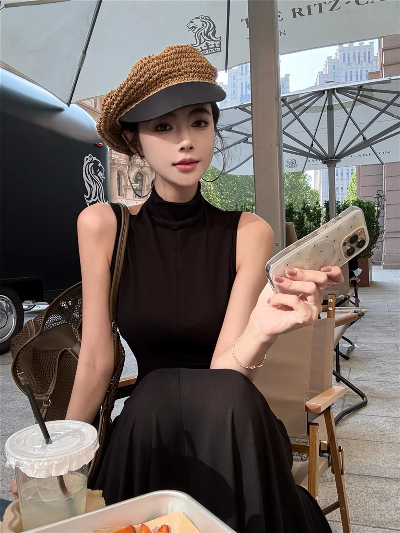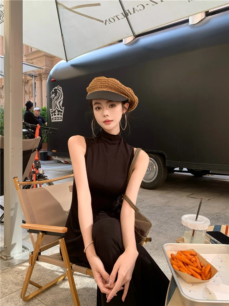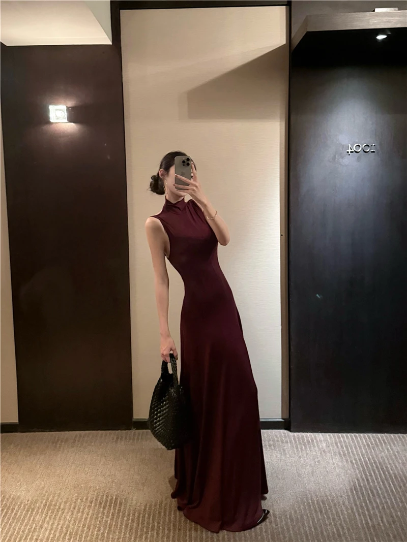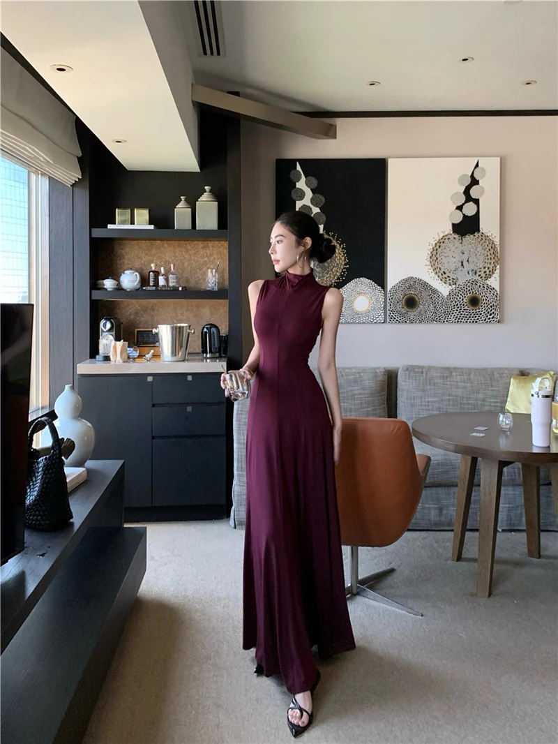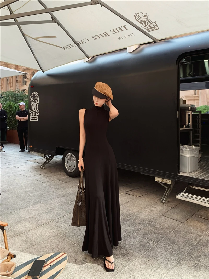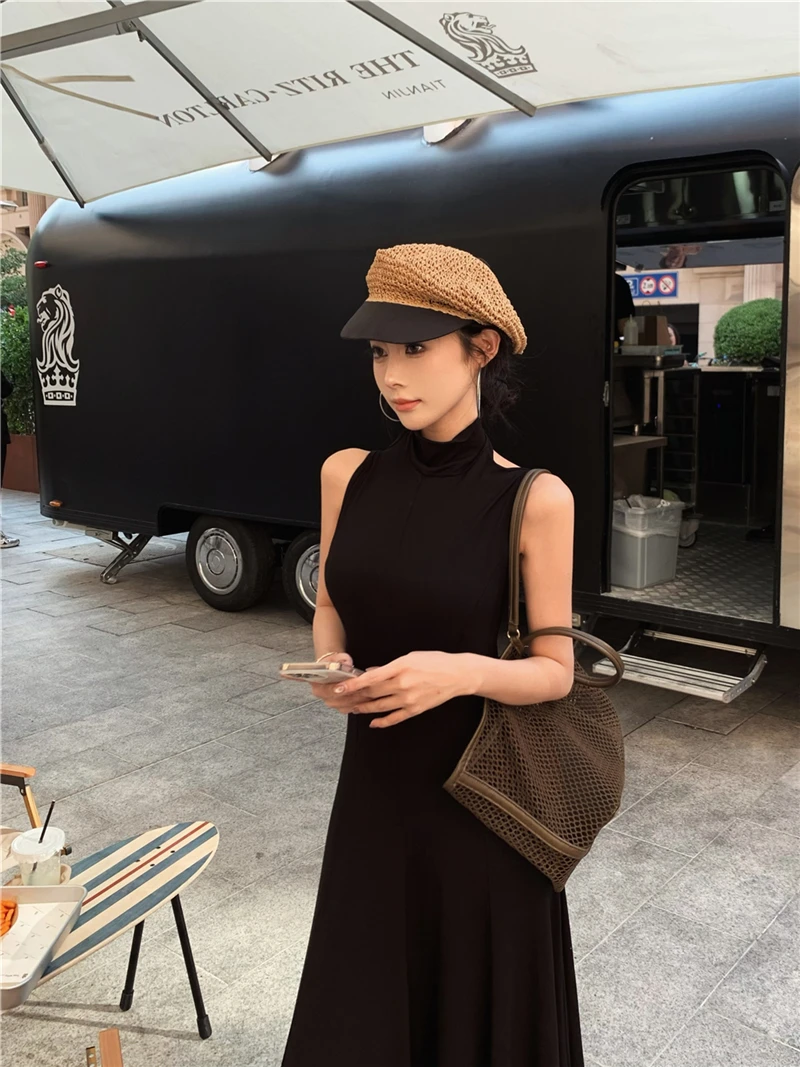 LBSFY -Women's Sexy Vintage Summer Backless Dresses Slit Fit Sleeveless Spaghetti Strap Halther Evening Dress Club Party Prom Chic New