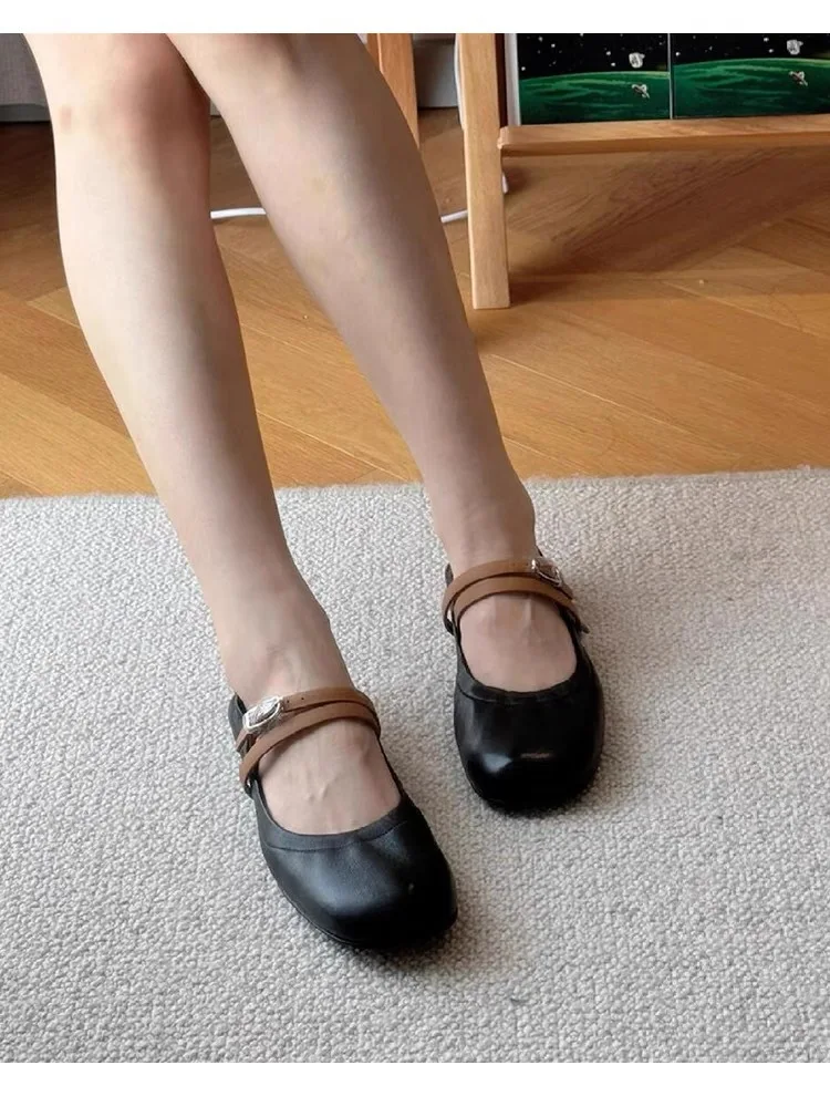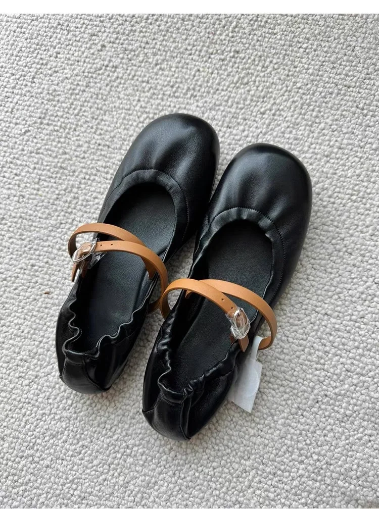 LBSFY - Women's Single New Flat Round Muller Shoes Casual Comfortable Lightweight Soft Sole Single Shoes comfortable belt buckle shoes