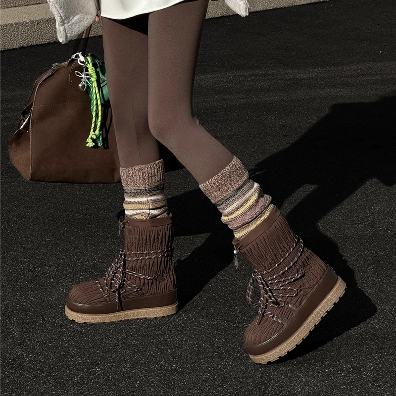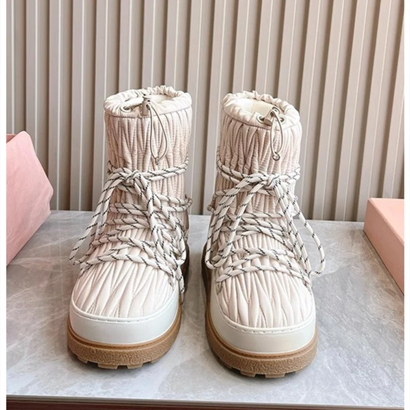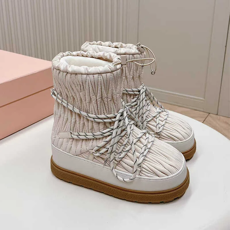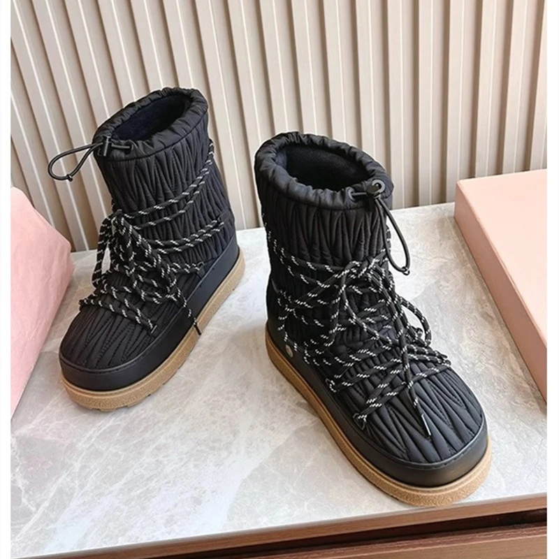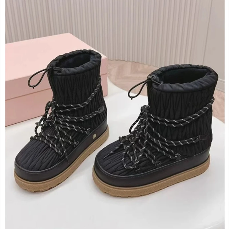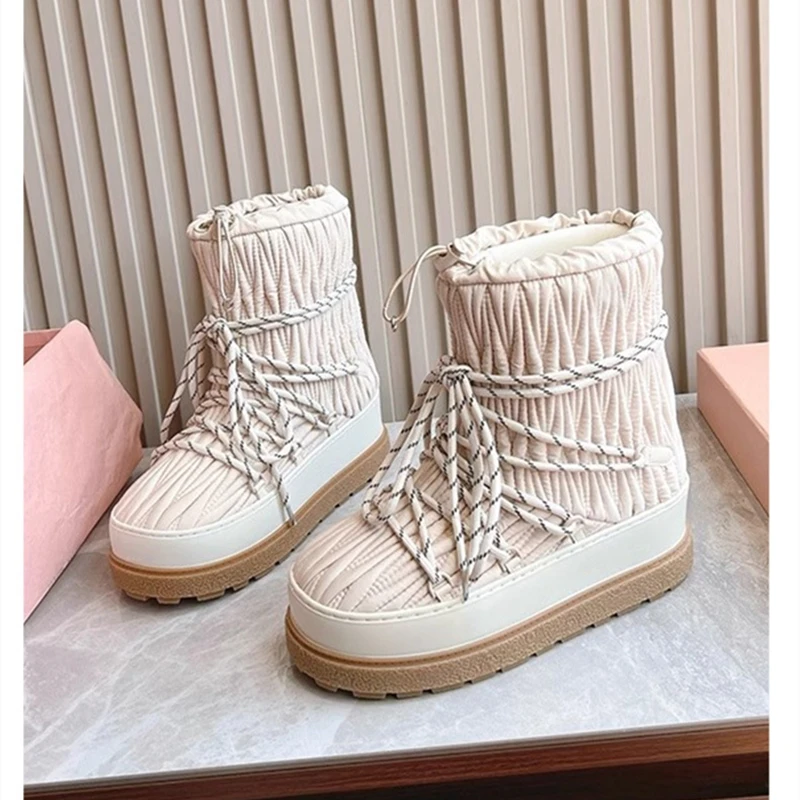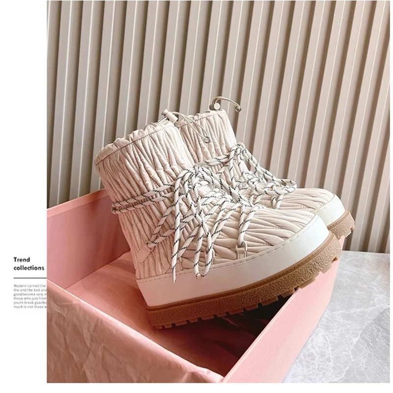 LBSFY - Women's Snow Boots 2024 New Pleated Big Head Short Boots Female Large Size Non-slip Platform Winter Shoes Women