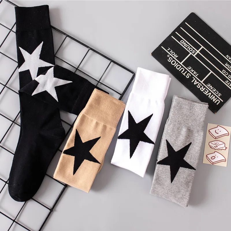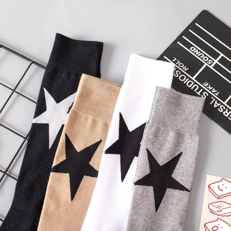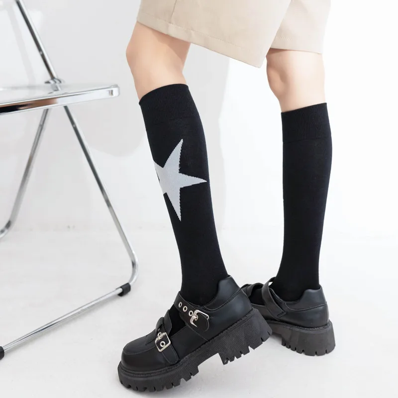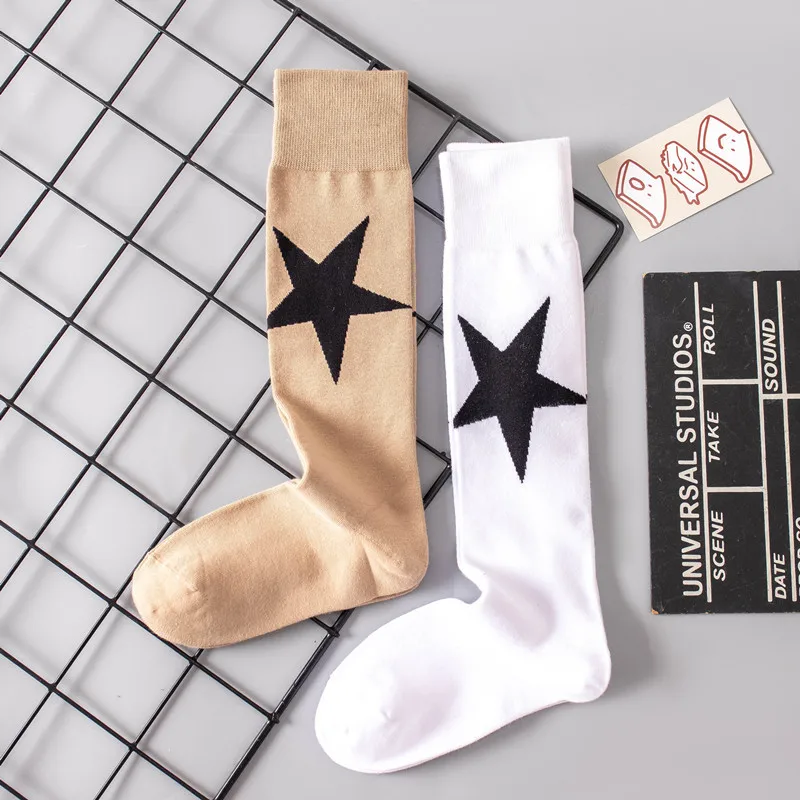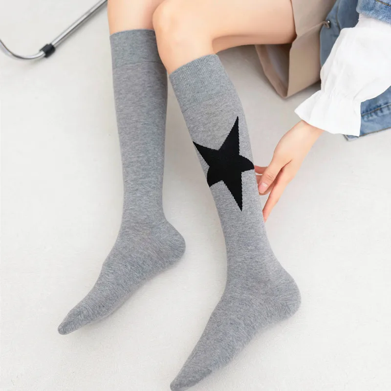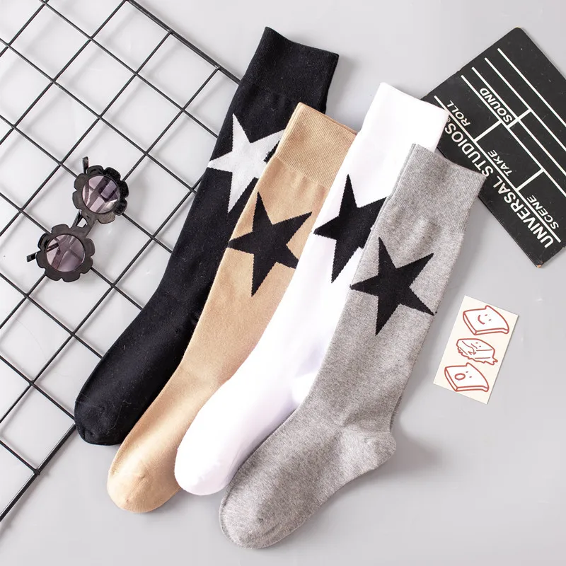 Lbsfy Women's Socks Cotton Spring Autumn Winter Black White Harajuku Korean Streetwear Socks Star Print Long Stockings Knee-high Socks