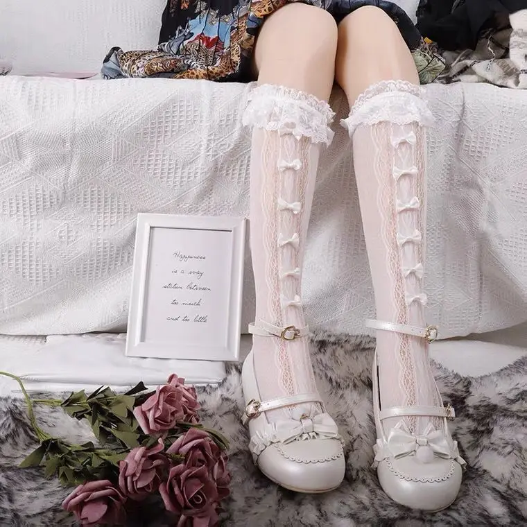 Lbsfy Women's Socks Summer Thin Mesh Breathable Comfortable Beutiful Mid-tube Japanese Girly Ballet Style Bow Jk Kawaii Socks