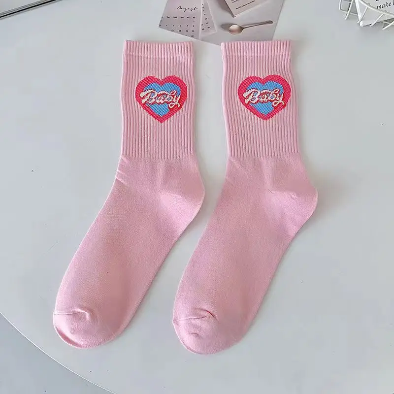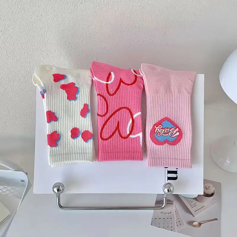 Lbsfy Women Socks Cartoon Bear Love Embroidery Female Lovely Cute Kawaii Lolita Cotton Socks Girls Gift Ladies White Long Stockings