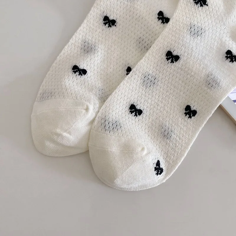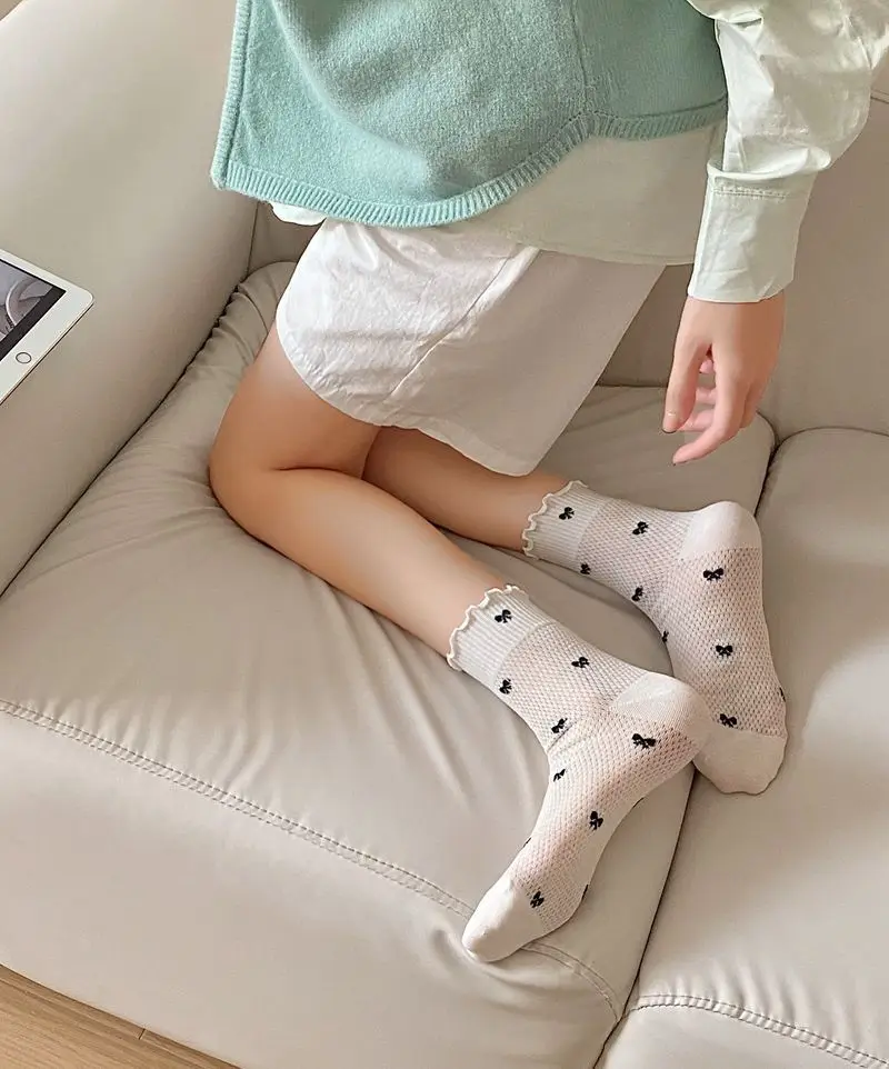 Lbsfy Women's Socks Spring Summer Bamboo Fiber Bow Girls Ruffle Socks Lolita Kawaii Simple Black White Thin Mesh Breathable Girls Gift