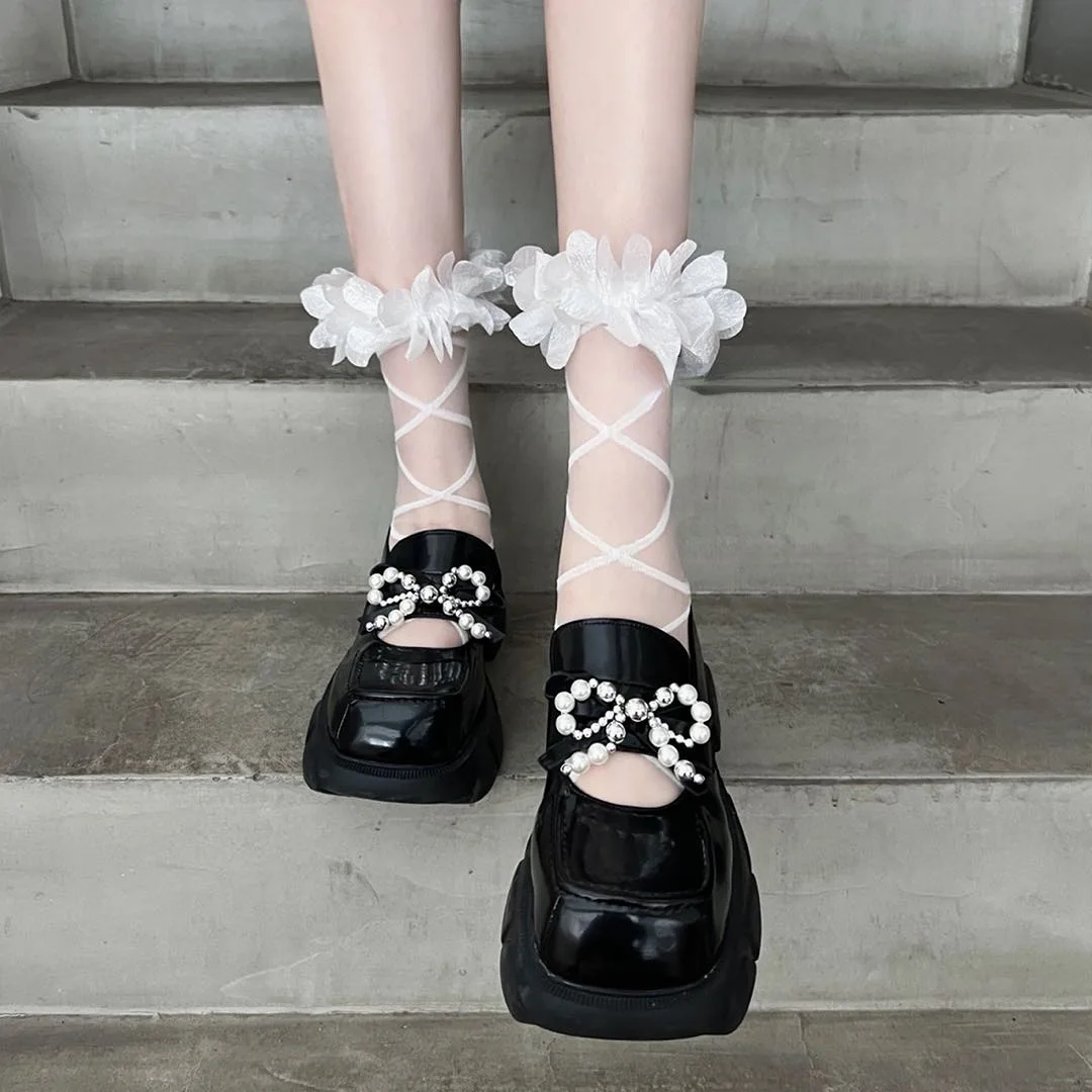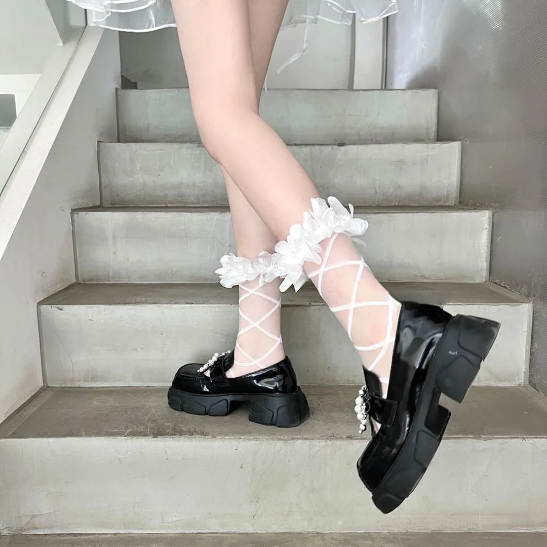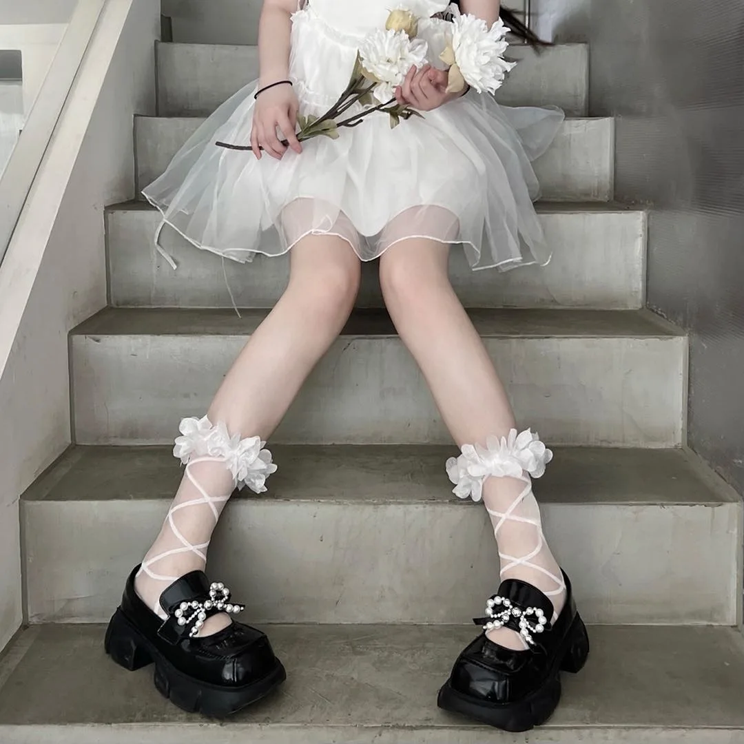 Lbsfy Women's Socks Spring Summer Mid-tube Thin Japanese Lolita Lace Stockings Sweet Cute Breathable Jk Kawaii Comfortable Socks