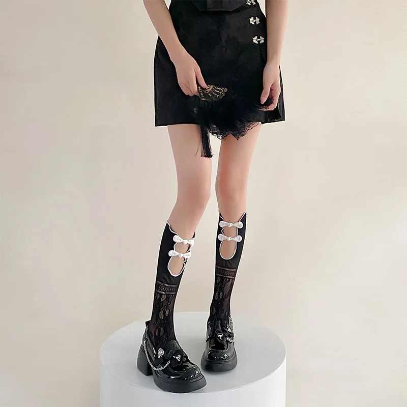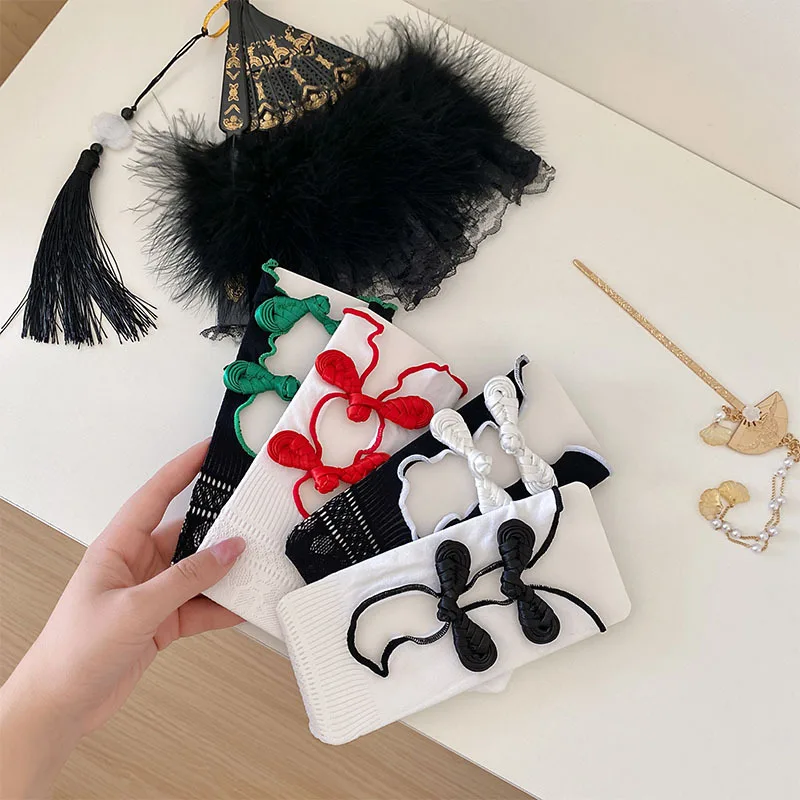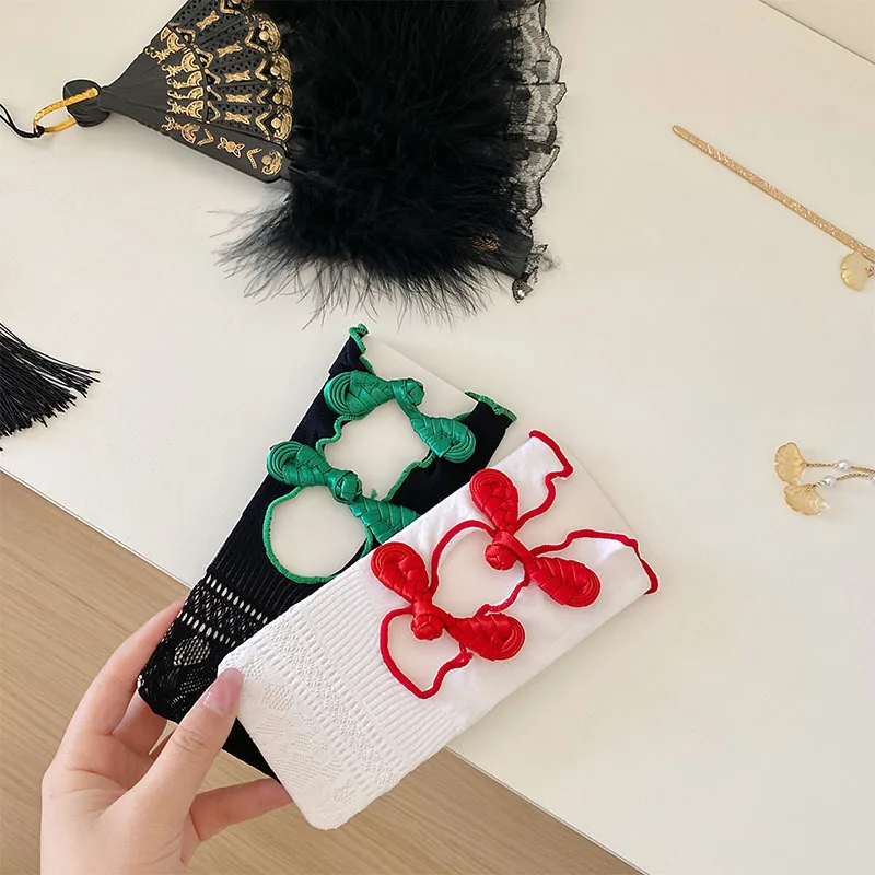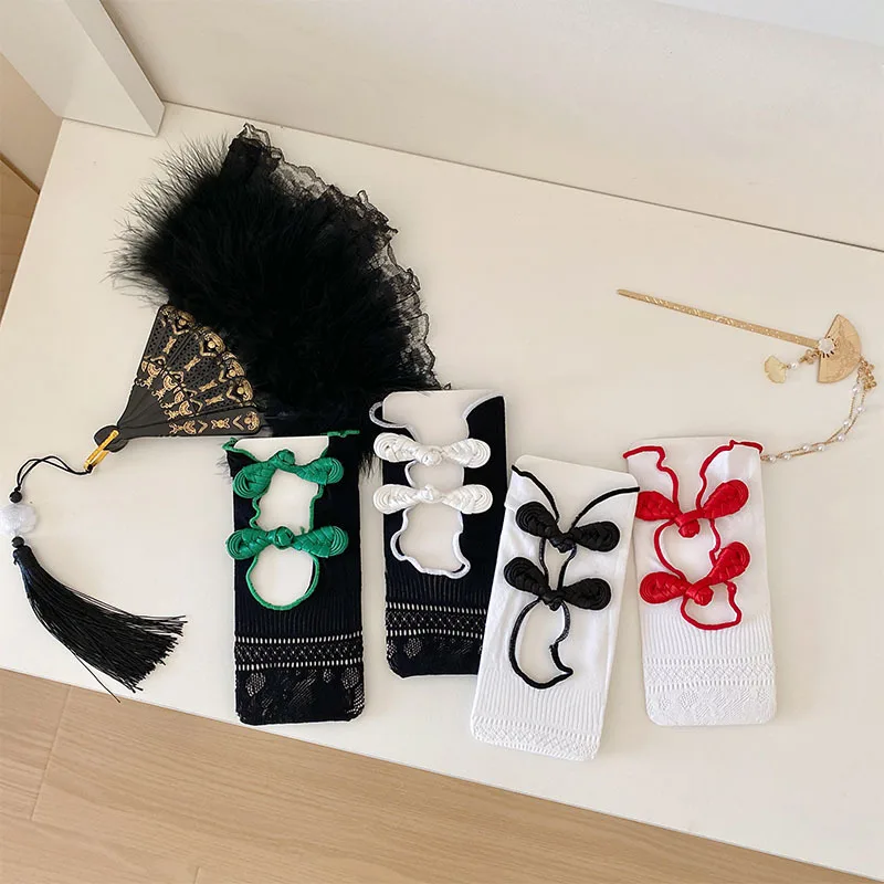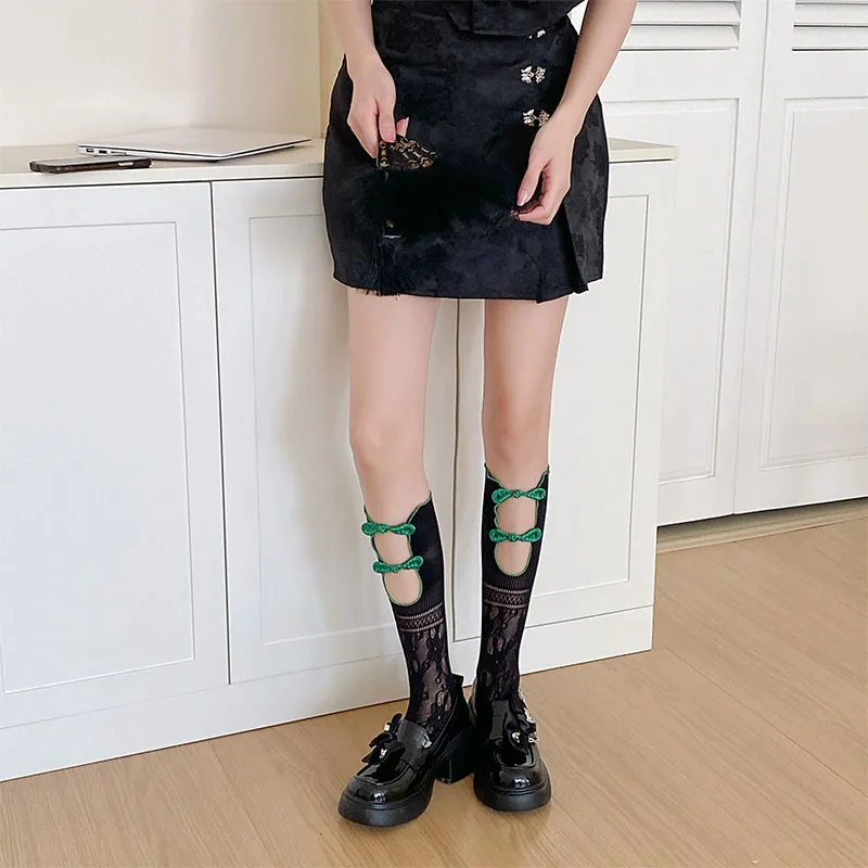 Lbsfy Women's Socks Spring Summer New Chinese Vintage Cheongsam Disc Buckle Fashion Sock Mid-tube Socks Thin Sweet Lace Mesh Pile Sock