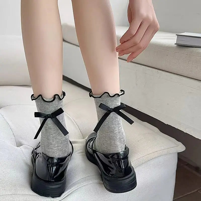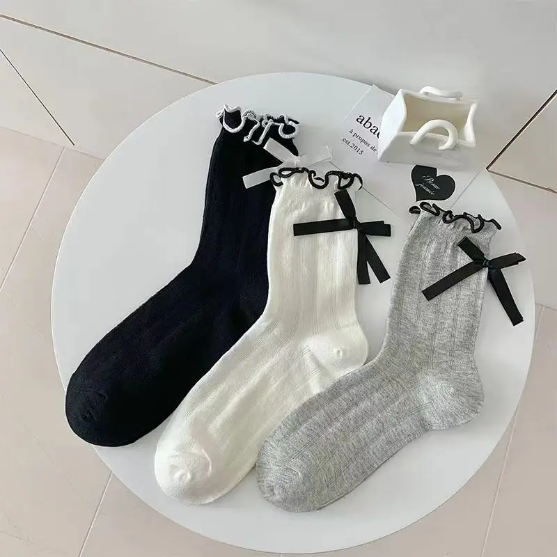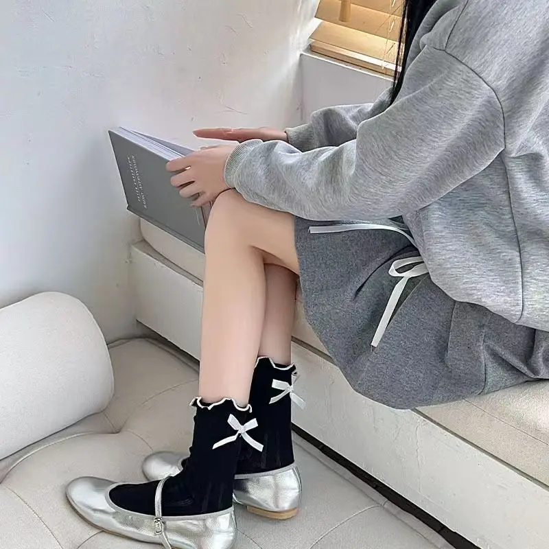 Lbsfy Women's Socks Summer Thin Mesh Breathable Comfortable Beutiful Mid-tube Japanese Girly Ballet Style Bow Jk Kawaii Socks