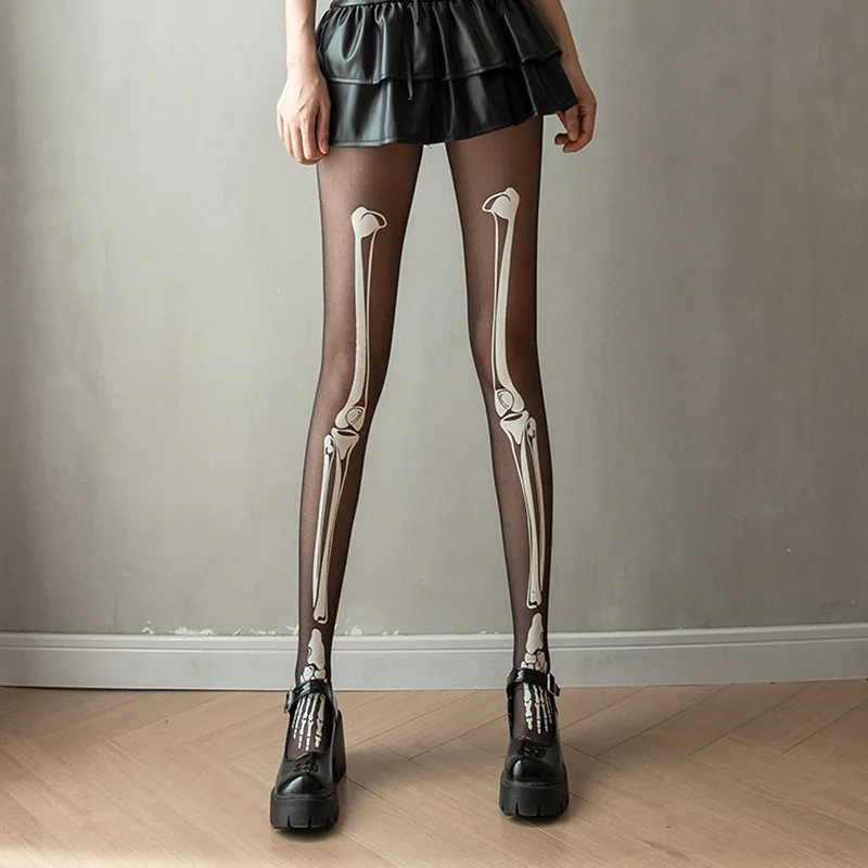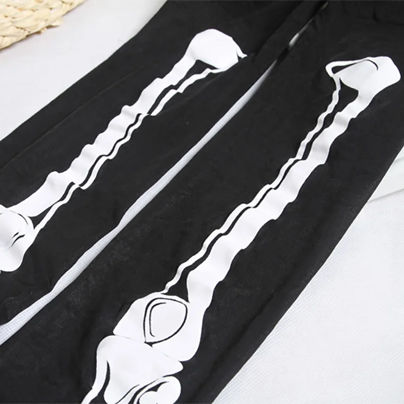 Women's Stockings Sexy Thin Black Thin Leggings Halloween Skeleton Silk Tights Skull Print Pantyhose Cosplay Party
