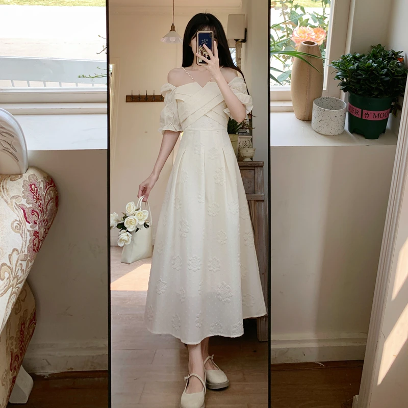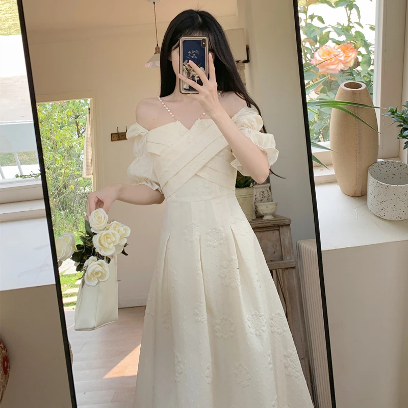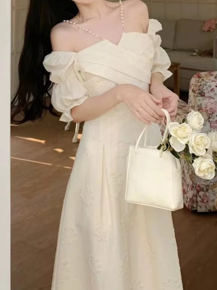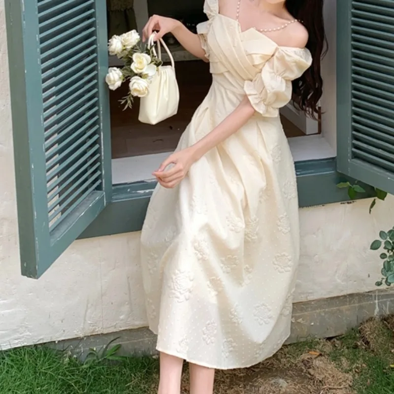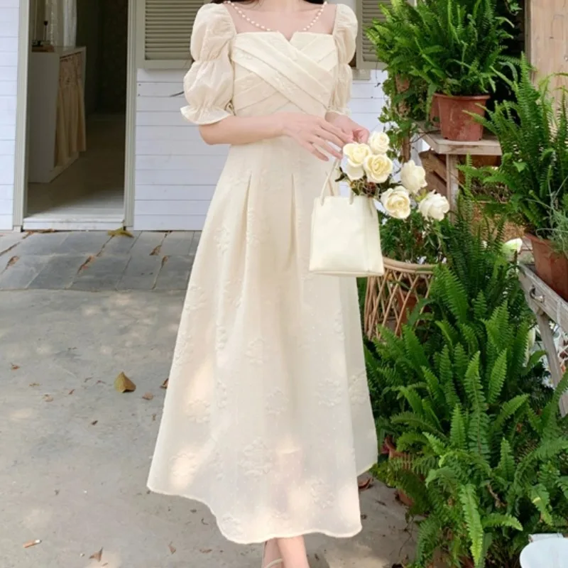 LBSFY -Women's Summer French Elegant Prom Dresses Fashion Slim Square Neck Vintage Long Casual Dress Female Party Commuting Dating Robe