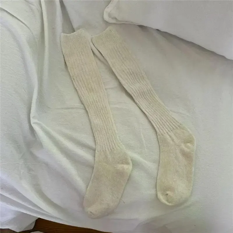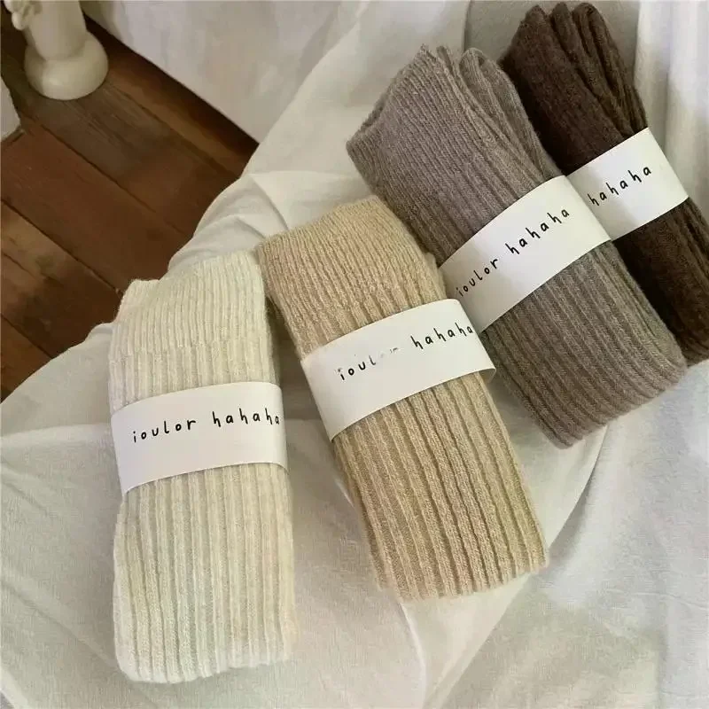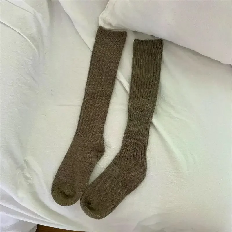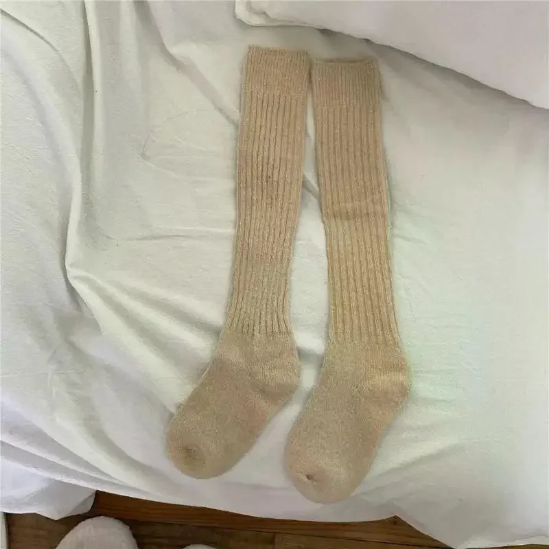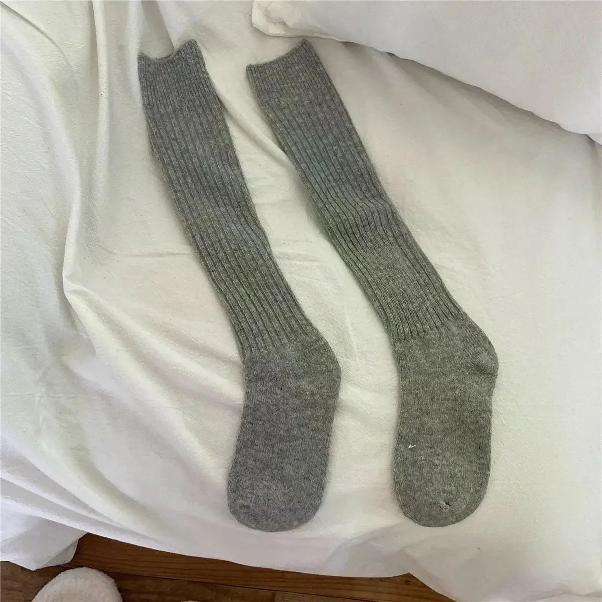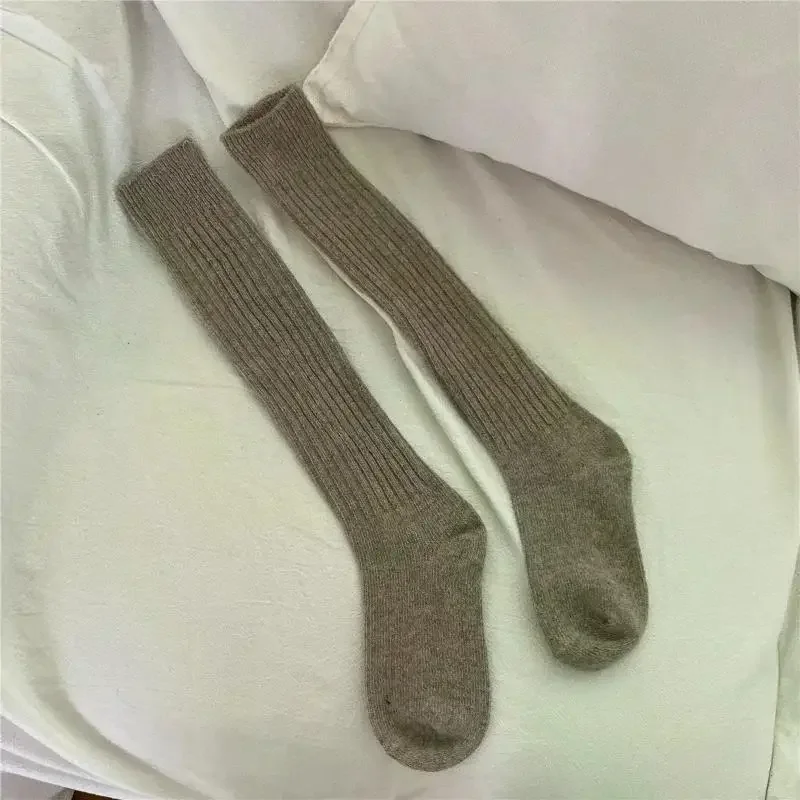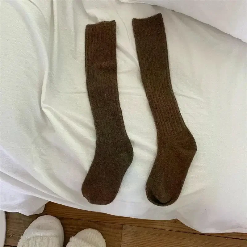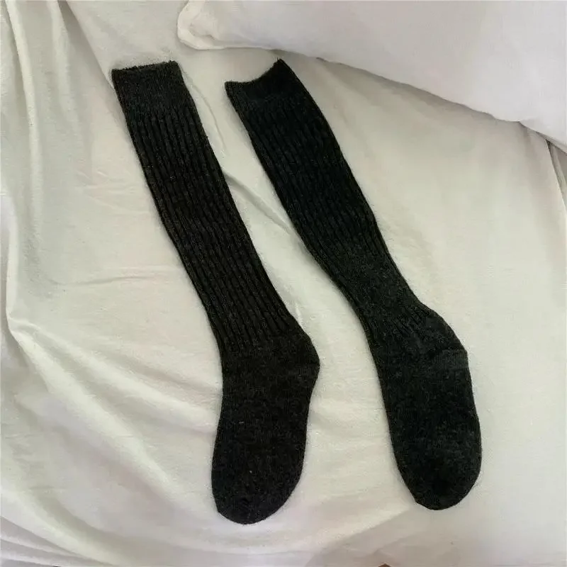 Lbsfy Wool Long Socks Cashmere Women Boot Solid Wool Thigh Stocking Skinny Casual Cotton Over Knee-High Fluffy Female Long Knee Sock