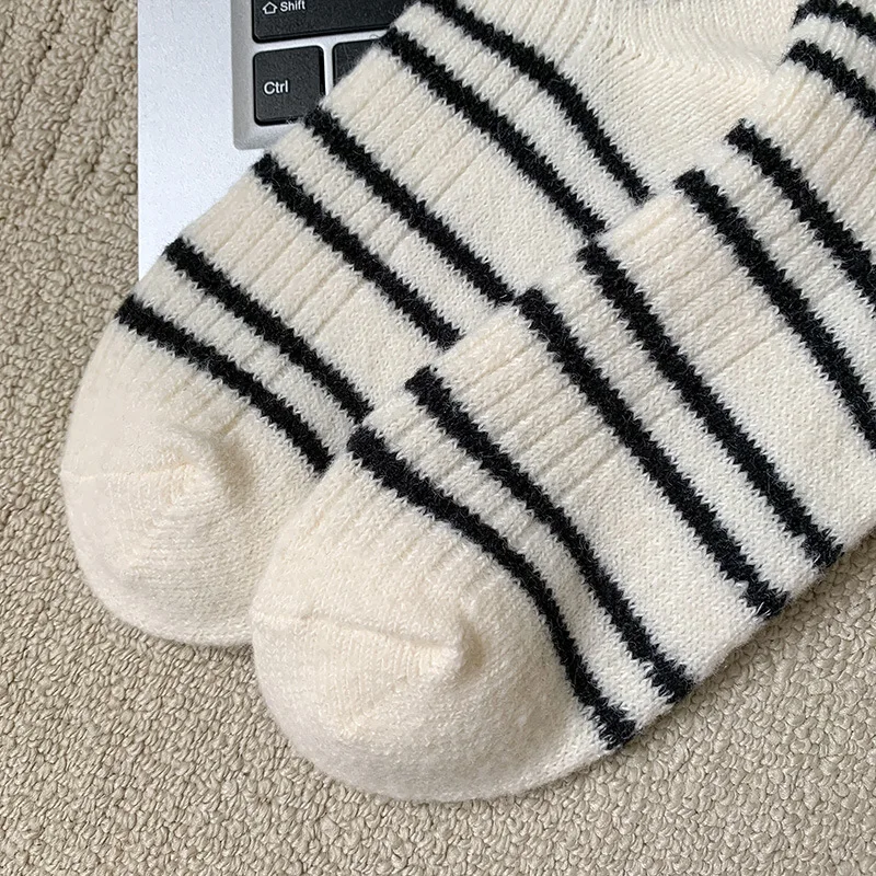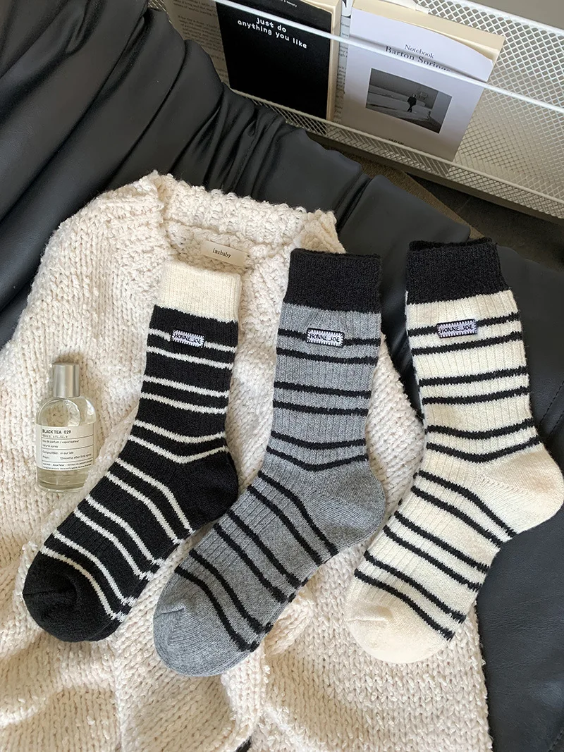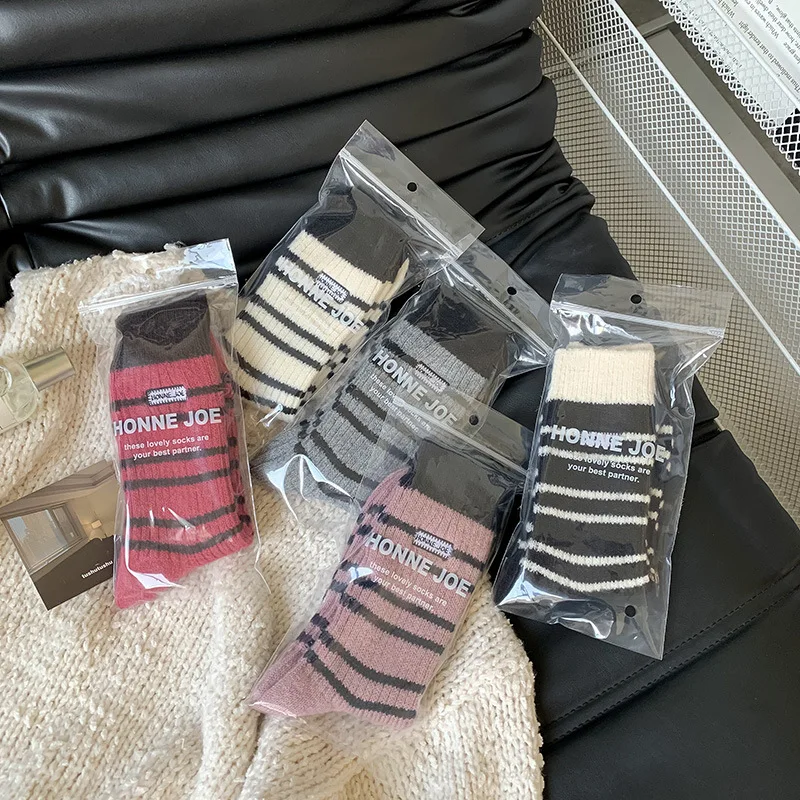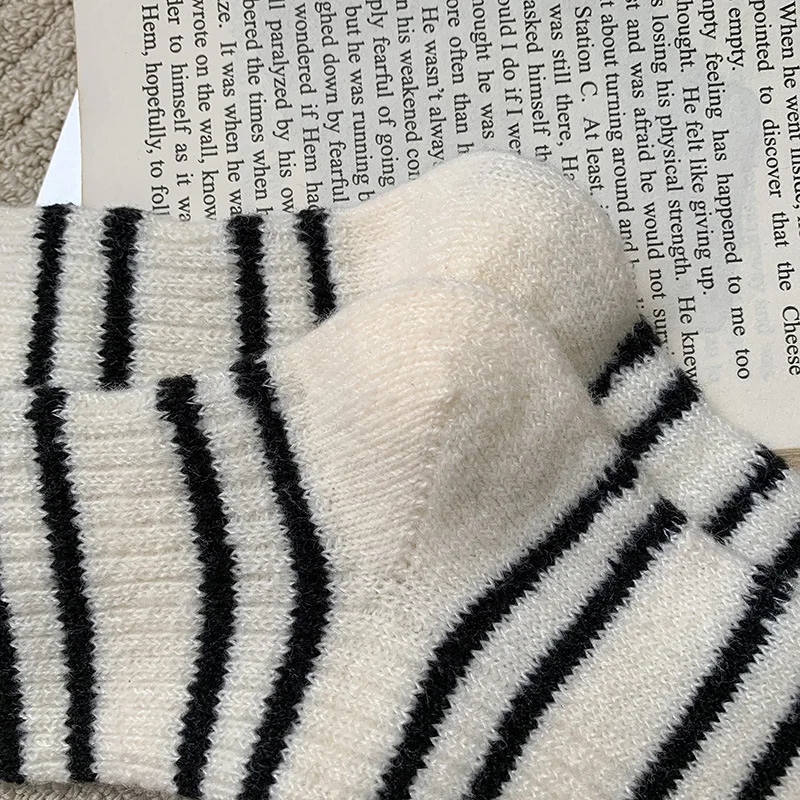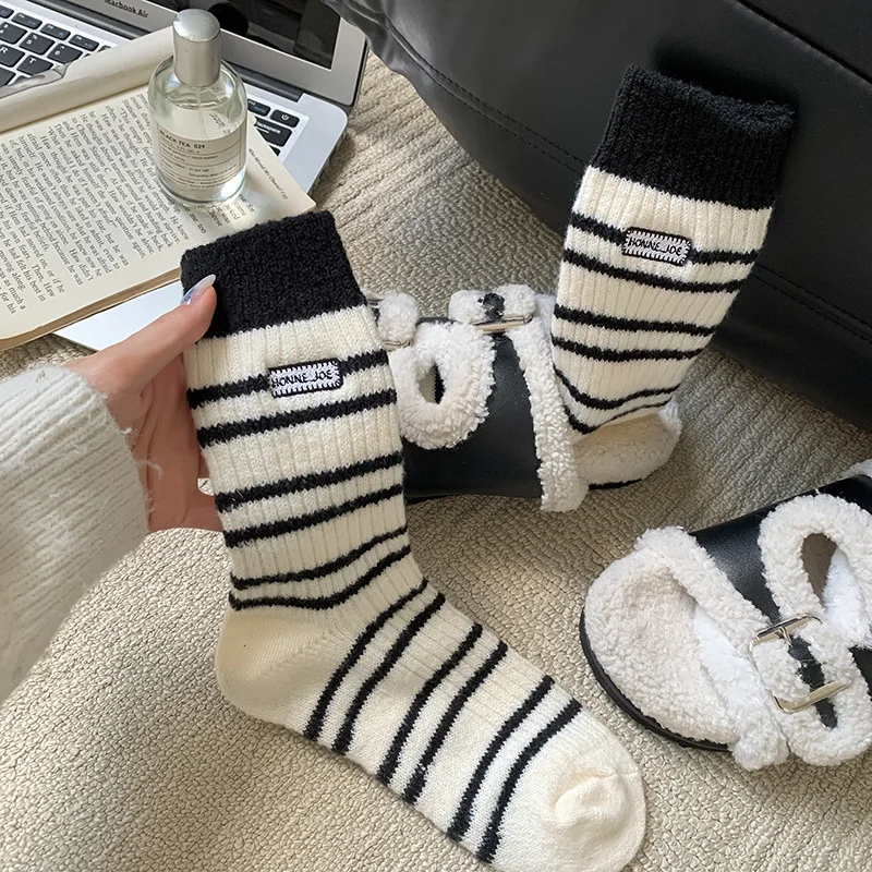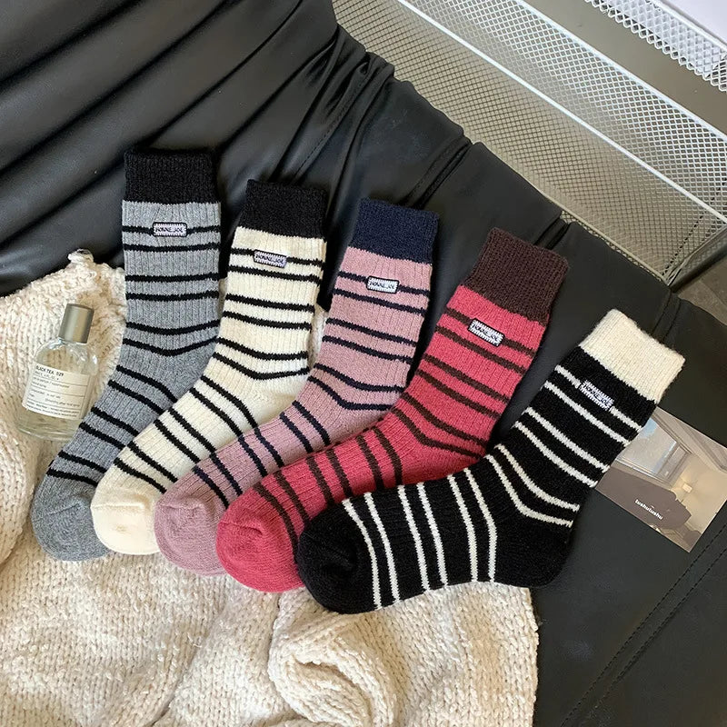 Lbsfy Wool Winter Thick Warm Cute Socks Cotton Korean Wool Stripe Designer Socks Middle Tube Kawaii Casual Harajuku Women Socks