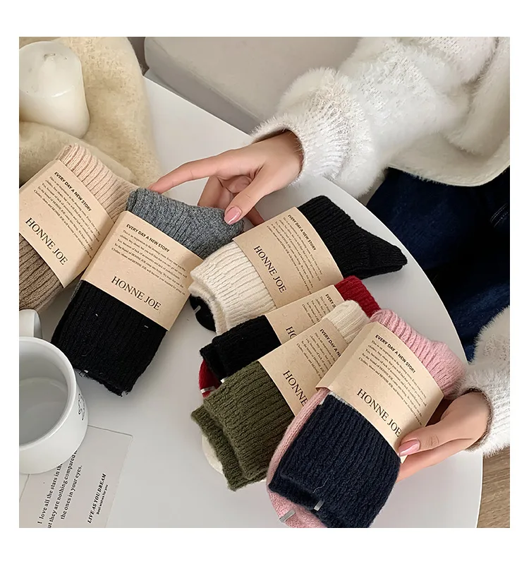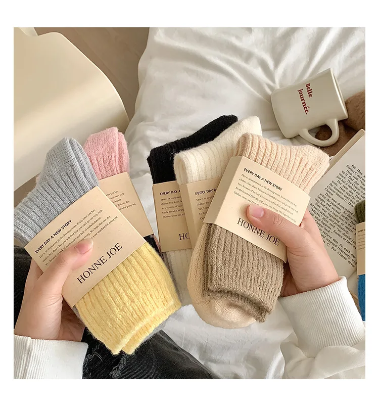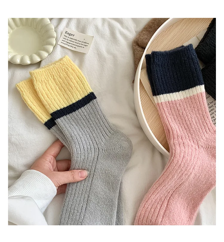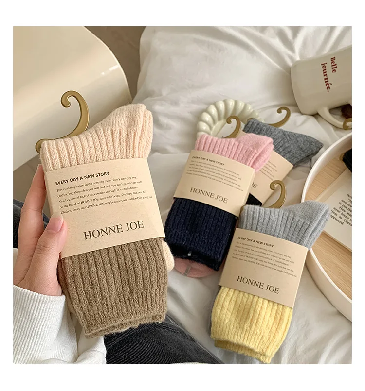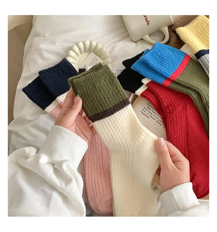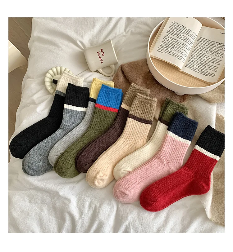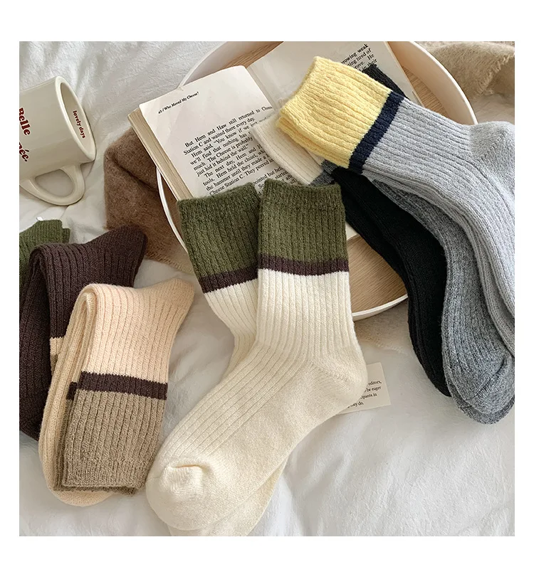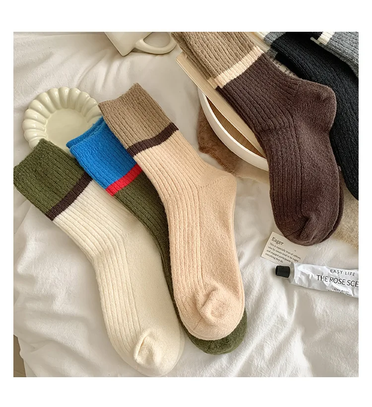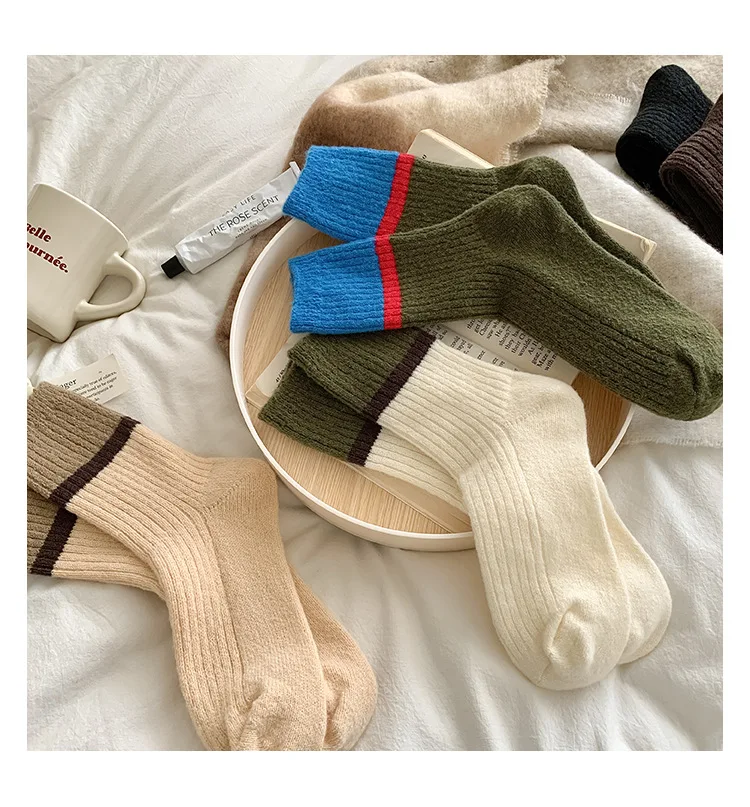 Lbsfy Wool Winter Thick Warm Cute Socks Cotton Korean Wool Stripe Designer Socks Middle Tube Kawaii Casual Harajuku Women Socks
