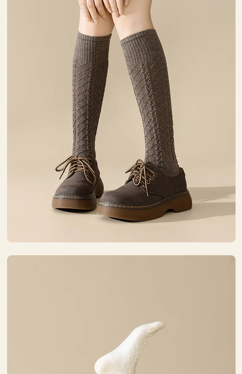 Lbsfy Wool Women Stockings Thicken Warm Knee Socks Stockings Wool Cashmere Thermal JK Girls Solid Color Long Socks Stockings
