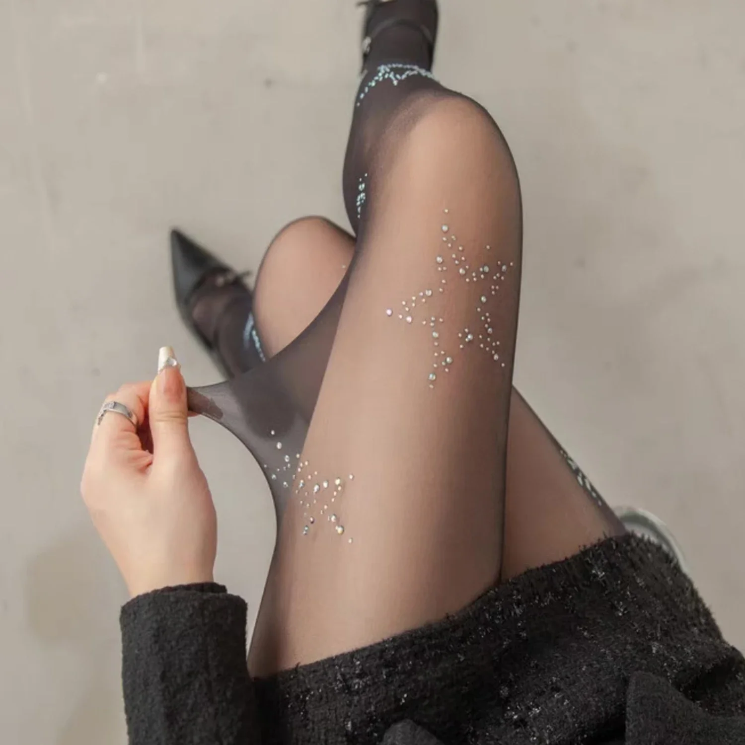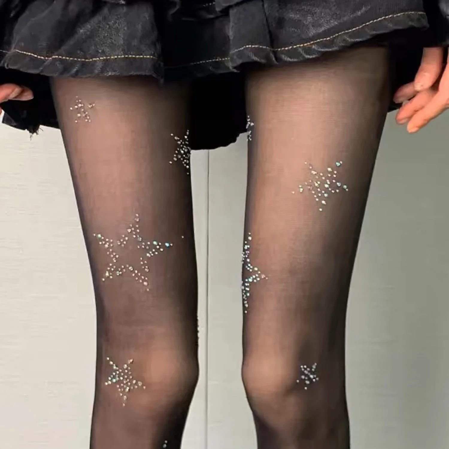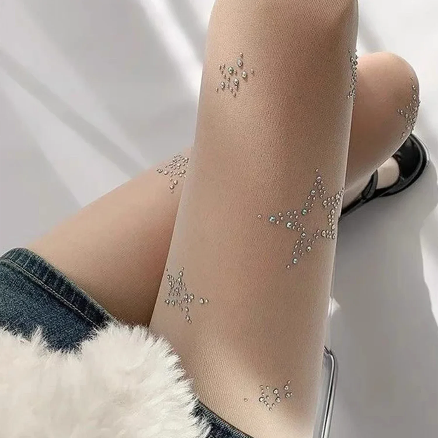 Lbsfy Y2k Star Diamond Rhinestone Fishnet Sexy Women Pantyhose Thigh High Stockings JK Lolita Girls Bling Underwear Pantyhose