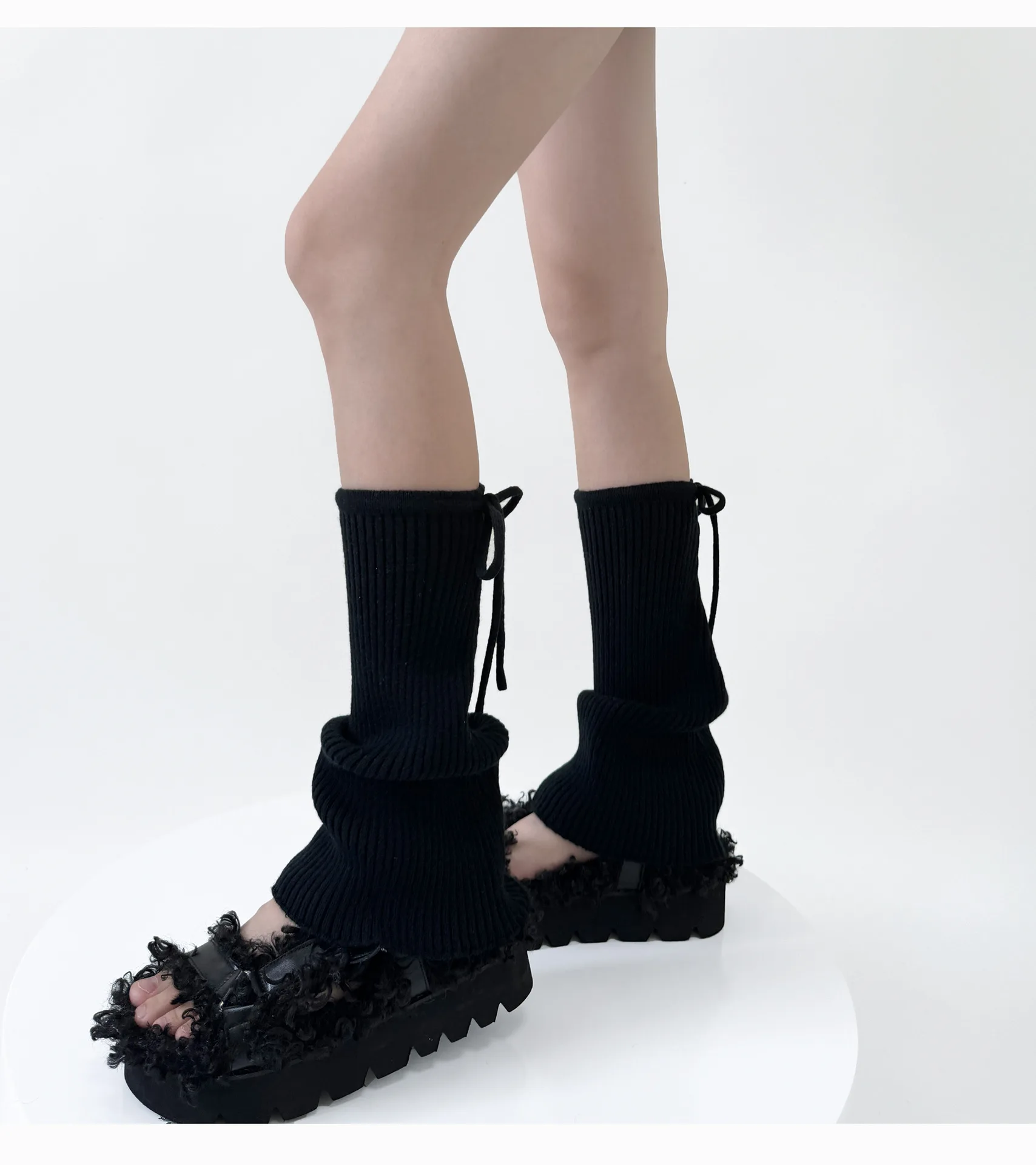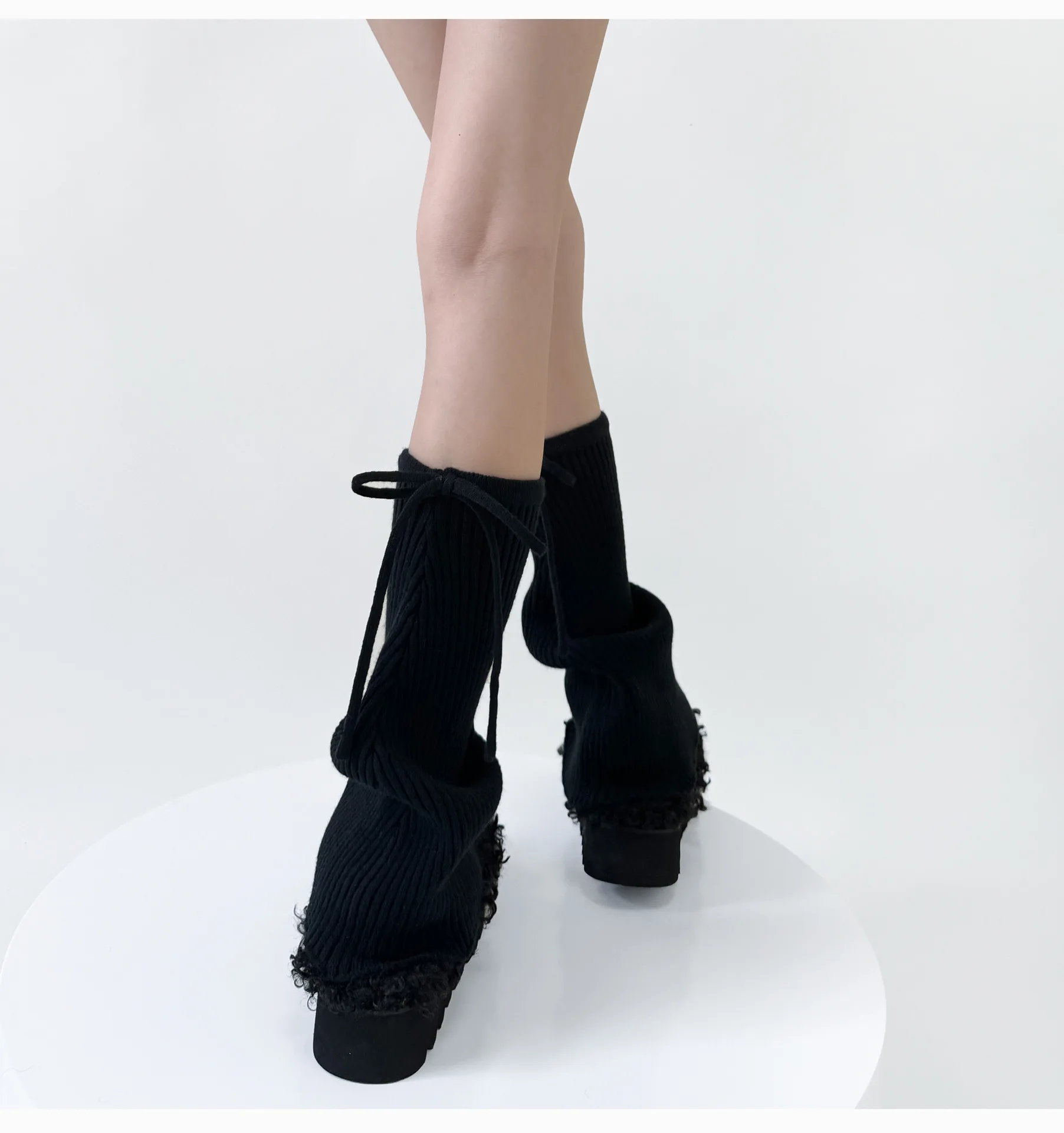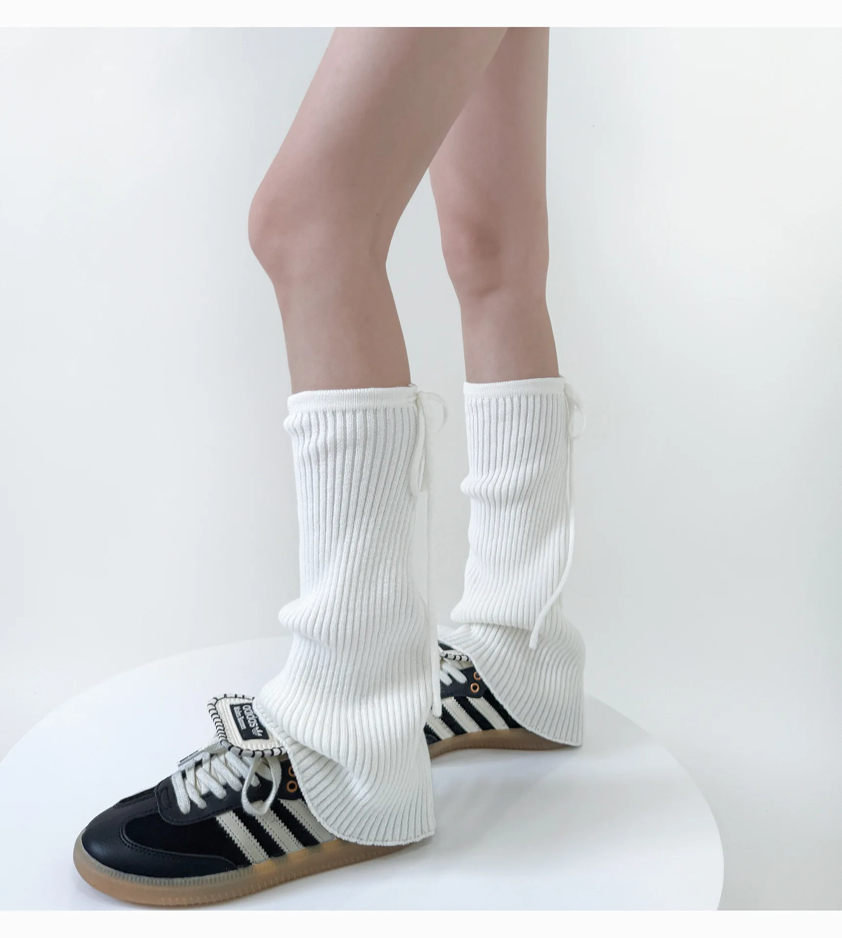 Lbsfy Y2K Strappy Design Flared Leggings Korea Women Knitted Covers Socks Leg Warmers Winter Thickened Calf Socks Harajuku Leg Covers