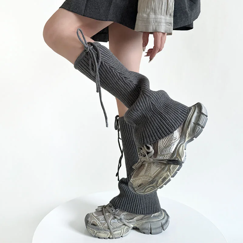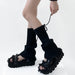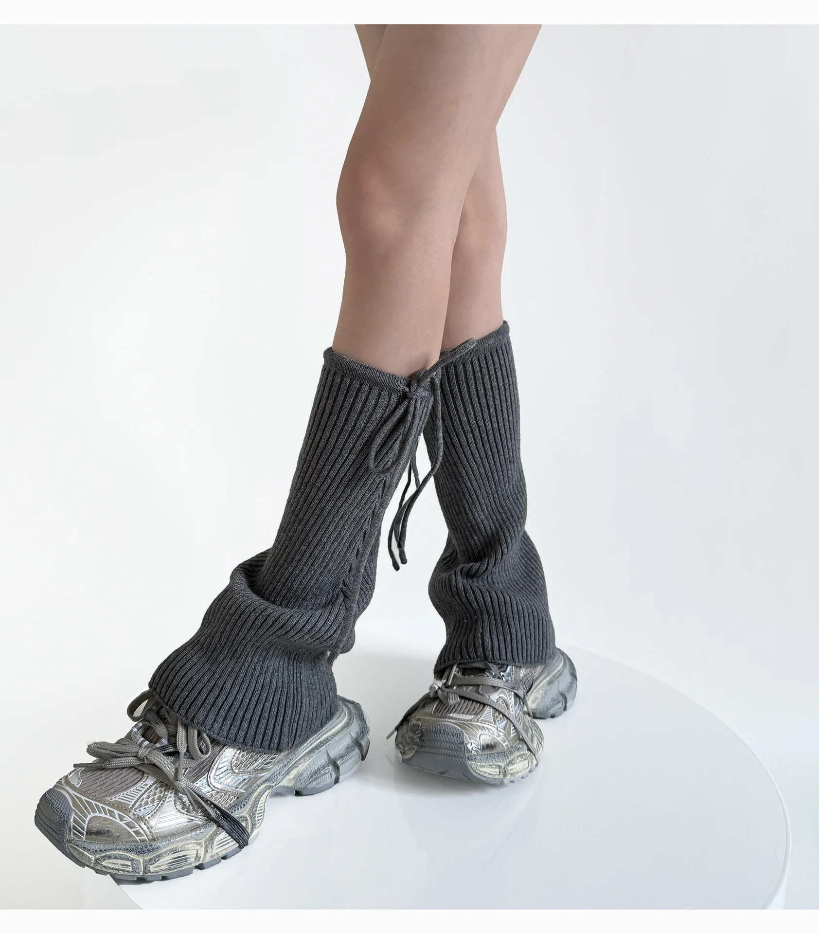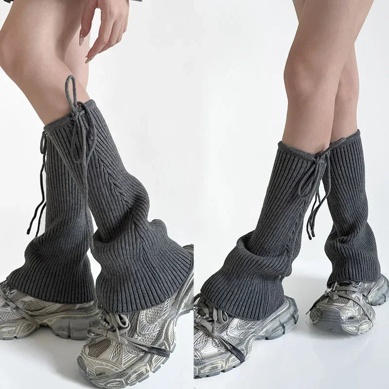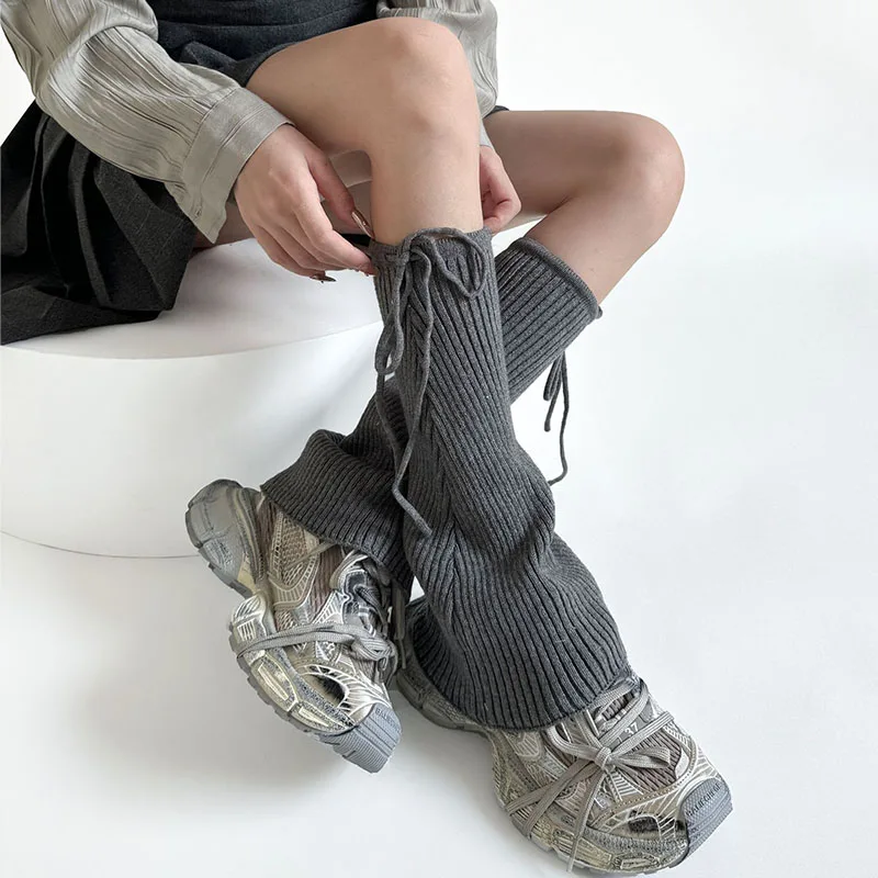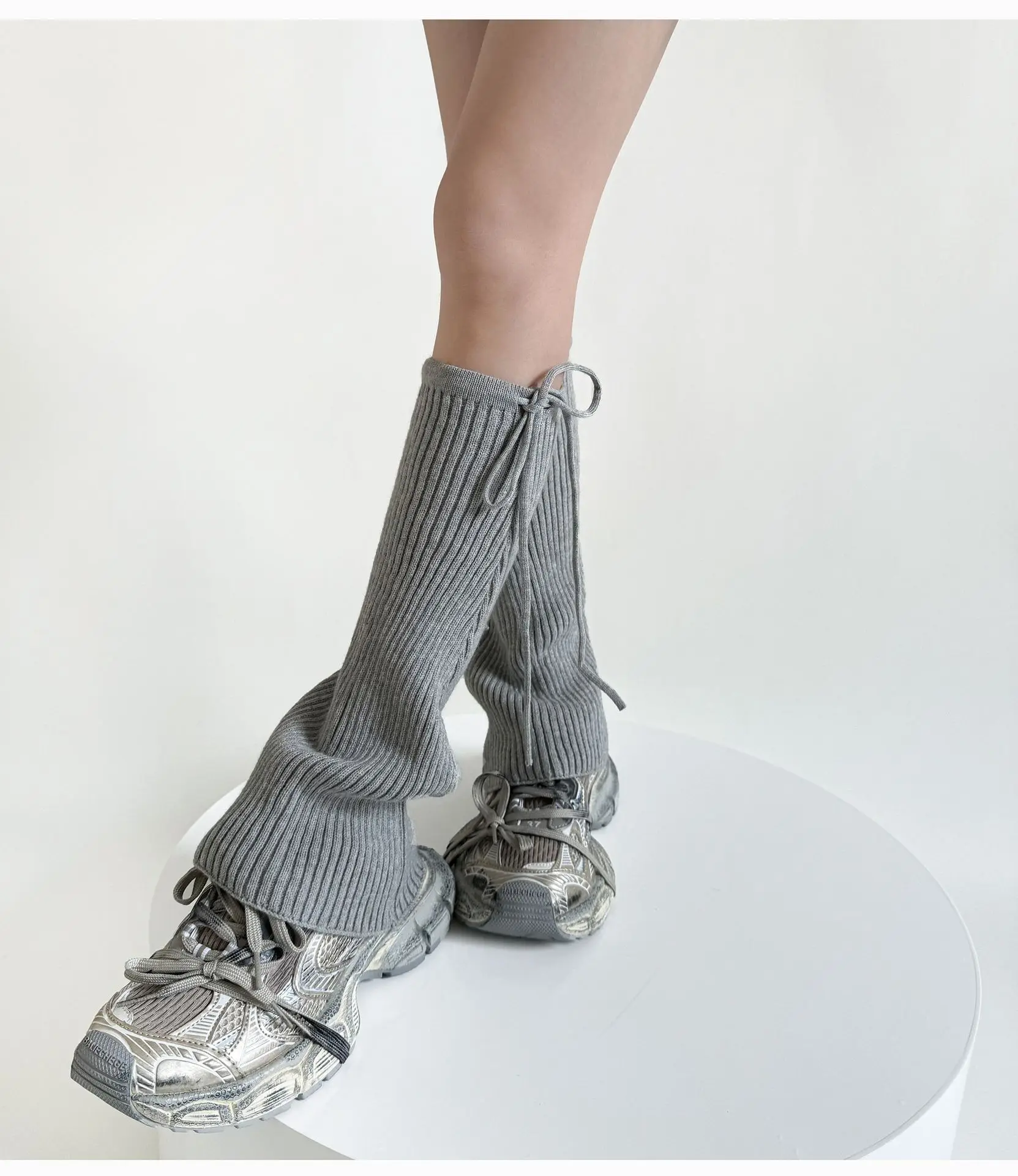 Lbsfy Y2K Strappy Design Flared Leggings Korea Women Knitted Covers Socks Leg Warmers Winter Thickened Calf Socks Harajuku Leg Covers