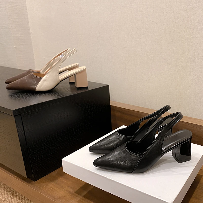LBSFY - Pointed Toe Women Shoes High Heels Autumn Slingback Chunky Sandals 2024 Party Dress Slippers Fashion New Slides Shoes Female