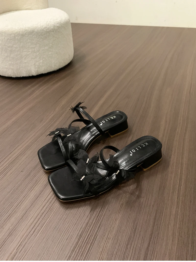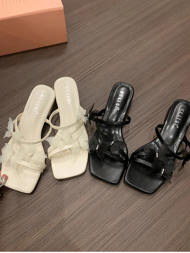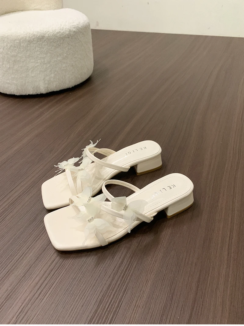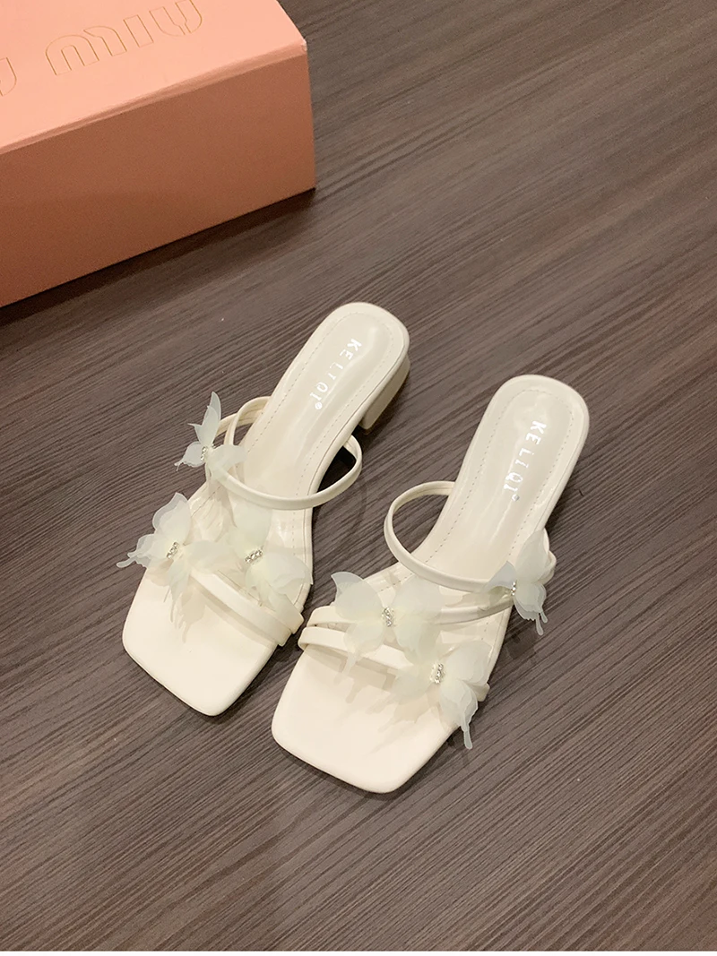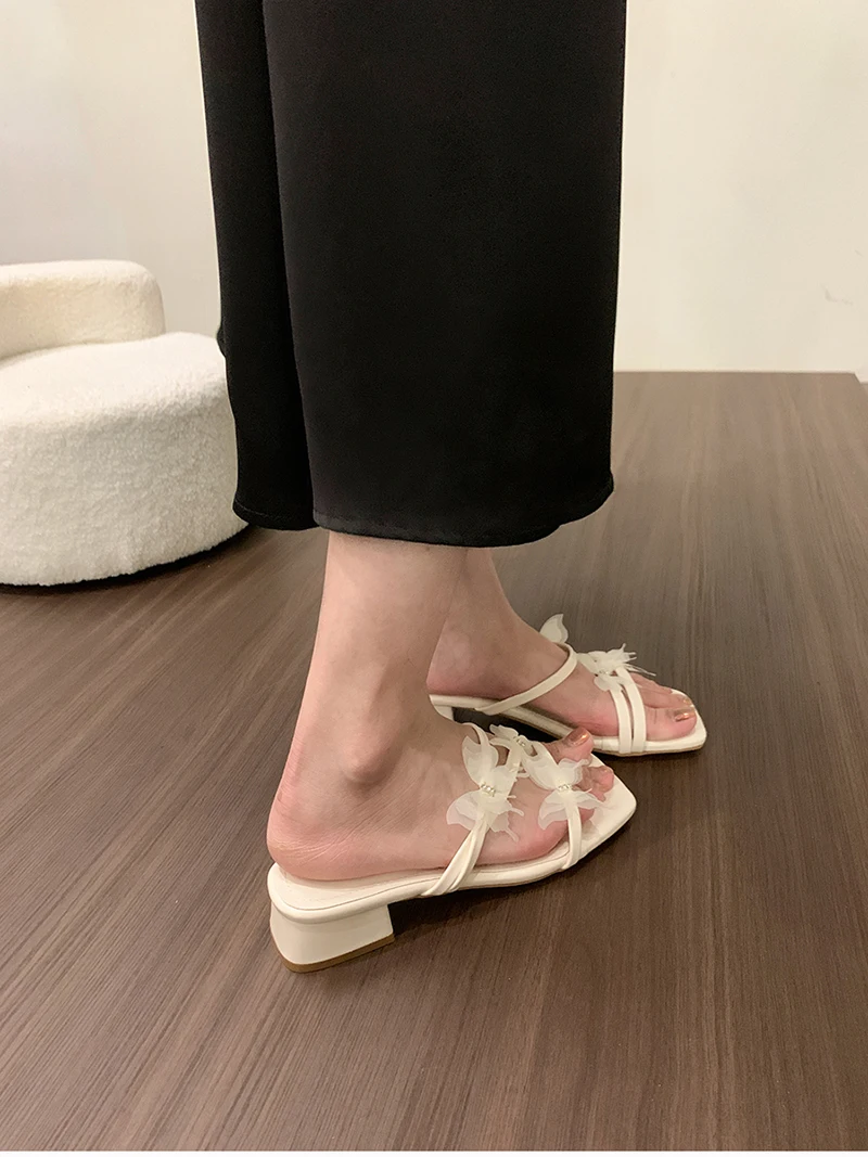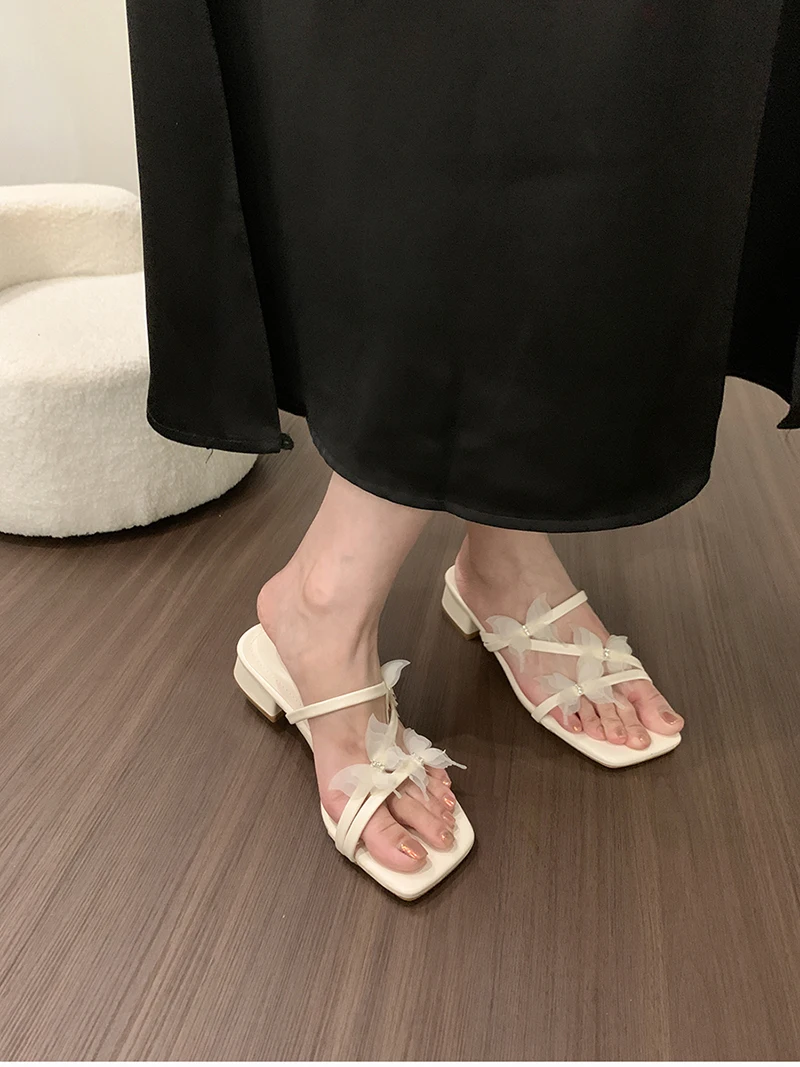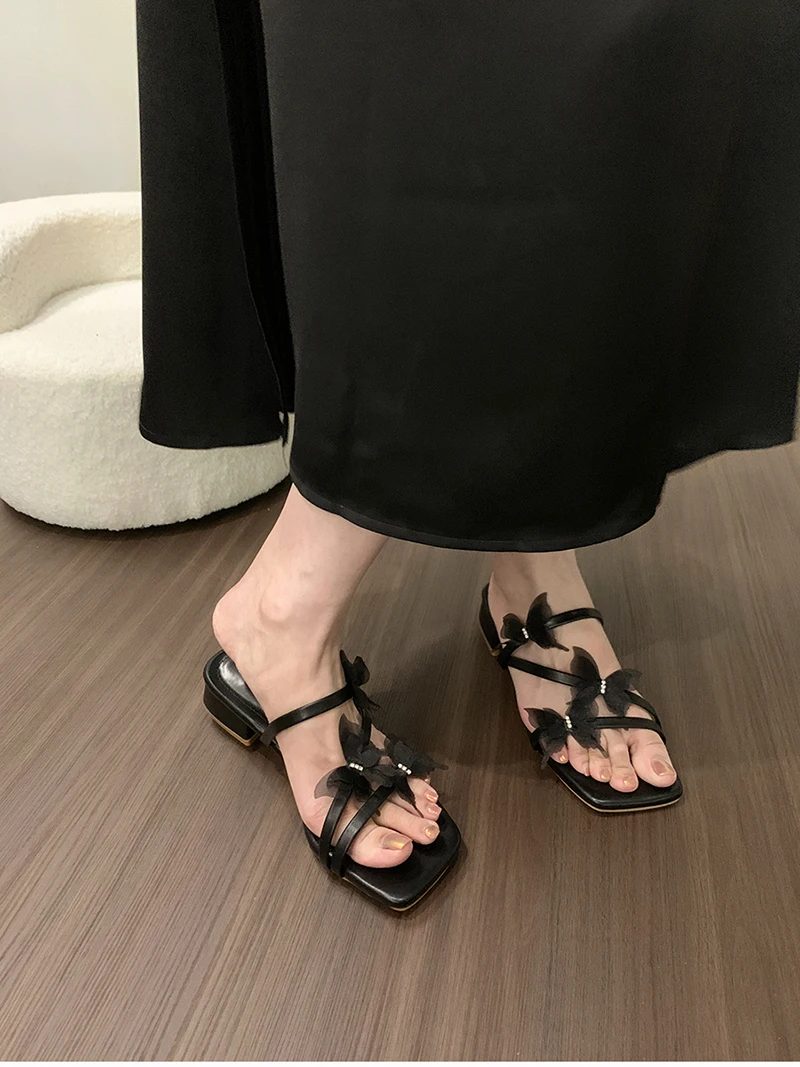 Summer Women Open Toe Slippers Fashion Butterfly-knot Low Heel Shoes Ladies Casual Dress Street Style Slides